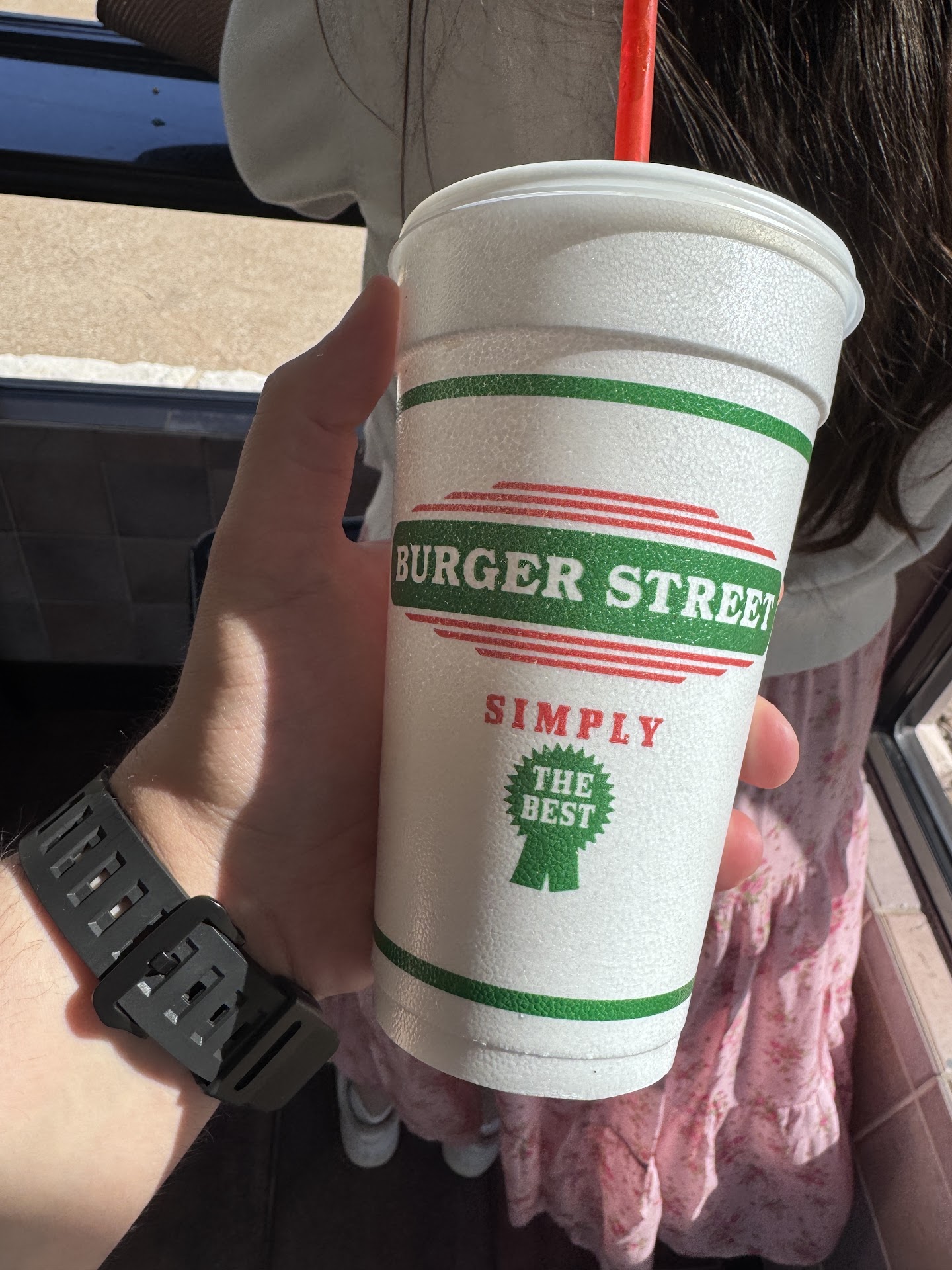 Read moreThis Burger Street is awesome. I've been here a few times and it's becoming a regular stop while traveling through the area. The traffic construction on the road out front makes it a little dicey to get into and out of, but it's worth it. I went through the drive through yesterday with my wife and daughter. The window attendant was articulate and repeated our order at the ordering radio, and at the pickup window. It's takes several minutes to get an order for 3 completed, but that's when you get fresh food that wasn't made 15 minutes before you placed your order. I usually get the double meat burger. Just from a visual perspective, the sucker was picture perfect. It really was. Could have been a front page for a magazine. Add to that the fact that it was hot and fresh. There's a strip mall right next to it and I usually go park over there and eat in the car. The prices are a little higher than I would like, but it is a...