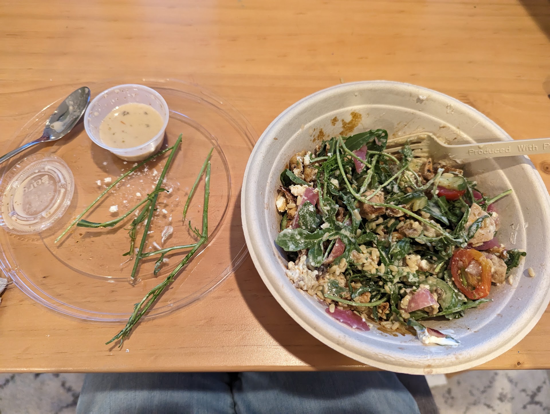Read moreI absolutely love CAVA, and am so grateful for a decent salad place in Tulsa Hills, but here's the thing-- you will never get a full bowl at this location unless you are annoying and ask for more ingredients. I'm constantly having to ask for more greens, more rice, etc. I hate being annoying and bugging the workers, but if I don't request more ingredients, I will 99% of the time end up with a bowl that is only half full. Strangely enough, my husband doesn't run into this issue as much as I do, for some reason. I suspect it's because my fave is the chicken and right rice bowl, and they end up skimping on the right rice for some reason. I haven't been back in a couple of months because the last time I was there, I had to ask for more arugula, and upon getting home, realized that 1/3 of the arugula was barely edible. Look at the picture and see how tough and big those stems are!! I love you, but please get it together CAVA Tulsa Hills. Their pita chips are downright amazing if you can get...
