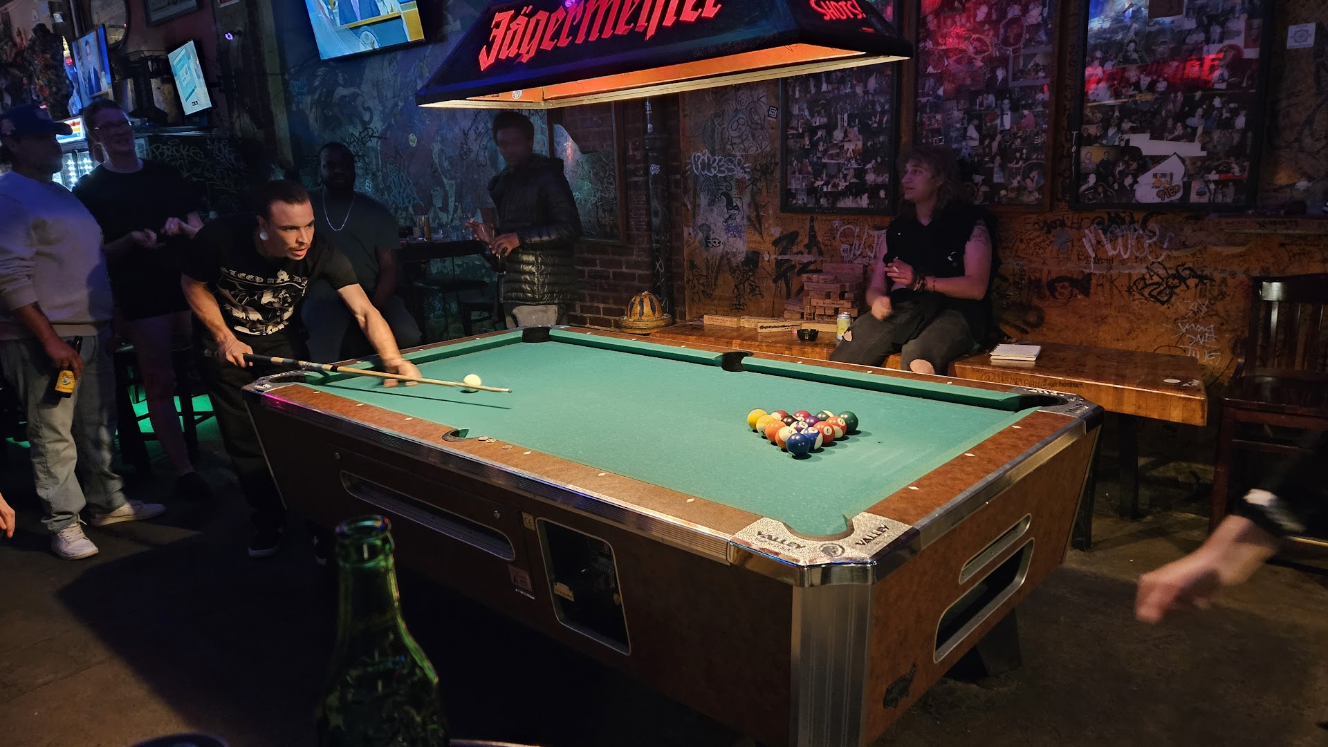 The people, the dirty dark ambience, the straightish pool tables (forget the sticks though), the intimacy, and one of the few places left you can smoke indoors so you can wake up hungover, extra disgusted with yourself.