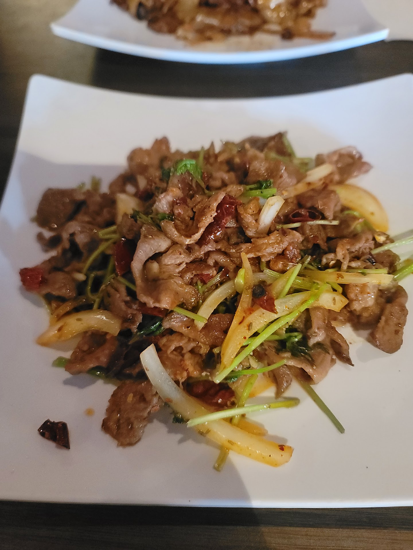My wife went with the beef flat noodles. Portion size and flavor were great. If we were to have one complaint about her dish was that it lacked beef, it was very sparse. She also mentioned she would enjoyed a crunch of some sort would have been nice like scallions. I opted for one of their recommendations and went with cumin lamb. The portion size and flavor of my dish was also great. The lamb was definitely plentiful. Being I have a high heat tolerance I ordered it on the spicy side, going with a 5 out 5.In the beginning I was sort of missing the spiciness but as I ate more it started to warm up, yet very tolerable.