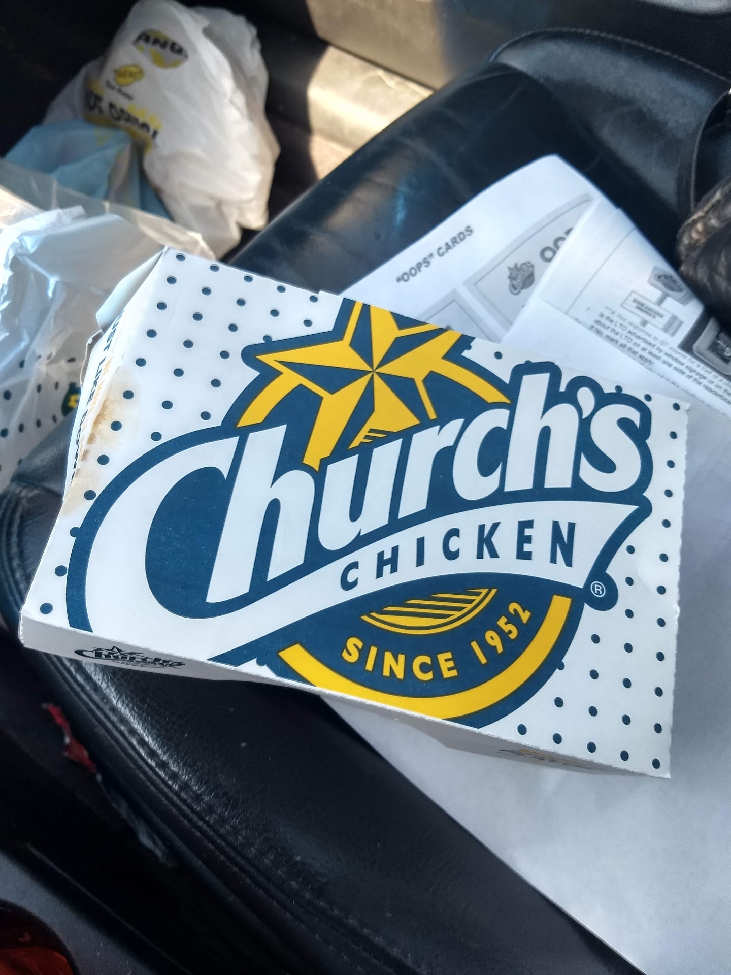 My husband & I enjoy Church's Chicken & eat it when we can find one. Their okra is the bomb! We were out in a part of Tulsa that we don't typically shop in & we saw this one & both were like Woo Hoo! So we pull in & there was 3 lg dogs lying in front of the door. One was ready to give birth! We went in & the atmosphere was not to good but we still ordered & sat down for our food. We wiped our own table off. There was 4 people on duty & it wasn't busy yet we didn't feel as if anyone had cleaned the eating area all day. The bathroom was hideous.When we ordered the biggest indication TO RUN was the fact as we order on a SAT. Pm @ approximately 1:30 the cashier turns to us & says " WE ARE OUT OF OKRA" really. Then we ask about dogs in front & she tells us that they stay there 24/7 & have been there forever! I ask why Animal Control isn't called to remove & her words were" it doesn't do any good , because they don't come to this part of the city! Unbelievable! City failure! They need help! Also cats were rampant @ dumpster! When we finally get our food, it's not what we ordered & it was old chicken that had already gotten rubbery. The fries were cold & the biscuits were hard as rocks. So for what we had hoped would be OUR chicken fix turned out to be a cluck cluck!! They need their DM to do a secret pop in...
