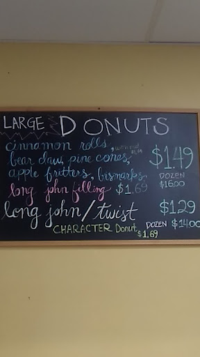 Read moreWalked in at 930am on a Thursday. Was greated promptly. 1 person in front of me, and a table of 5 gentlemen chilling.so they do have some seating..They still had an array of donuts left and sausage rolls....I got a 'pine cone', i thought it was an apple fritter but it was this amazing cinnamon donut- 1.99$....and a twisted chocolate donut - 1.49$ ....sooo good...both had alittle crunch on the bottom of them, a crust is too much of a description but alittle crunch....they were both yummy....keep up the good work....I gave atmosphere a 4 star, cause come on, it's...