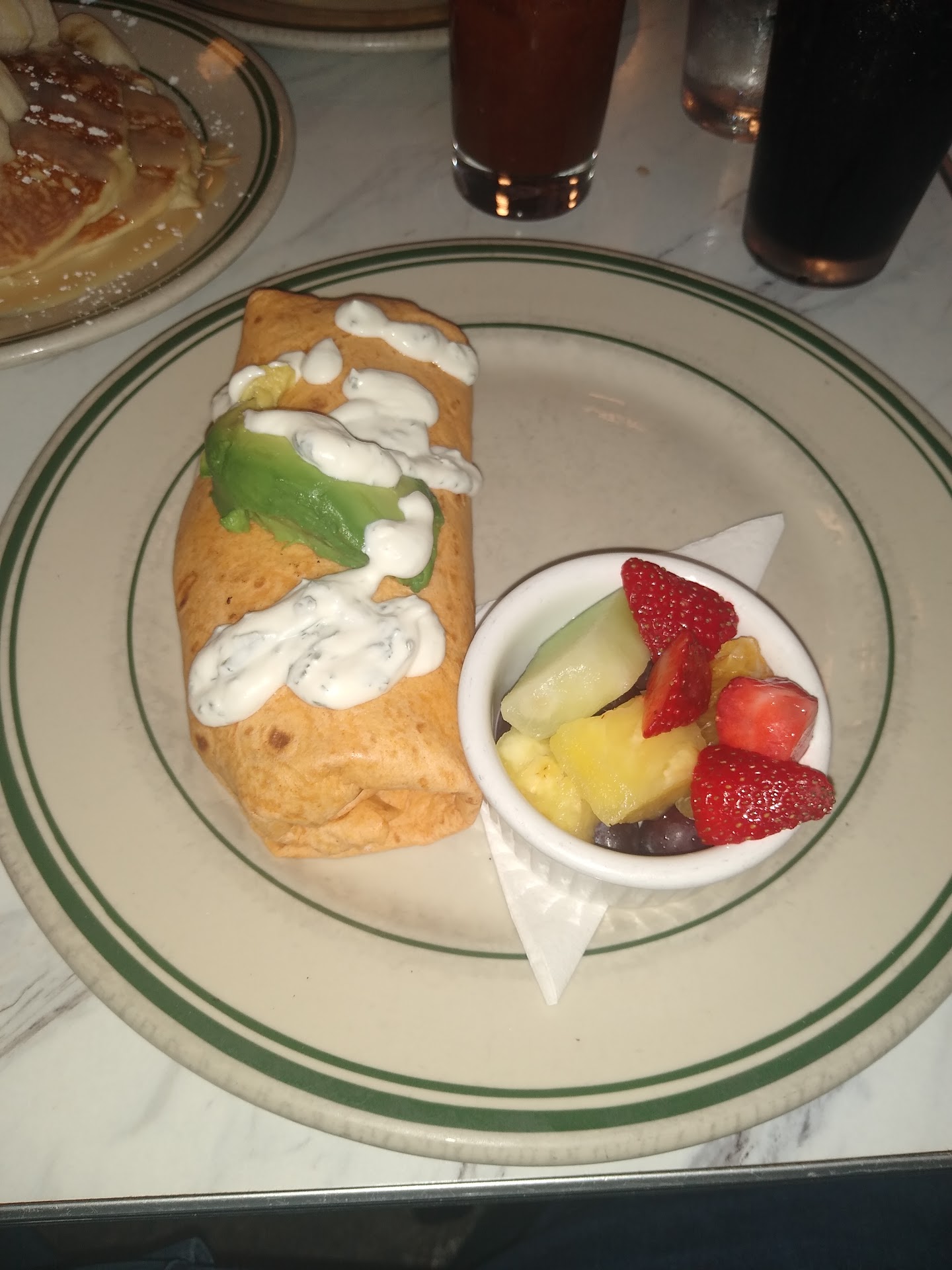 Read moreWas in town and decided to give this place a try based on the top reviews. The place is nice and was within walking distance from our downtown hotel. The service was pretty good, even though I got a water glass pulled from an empty table, which had lipstick mark and a chip, didnt bother me but my family more so. Got the chicken and waffles. The Saracha honey sauce for the chicken was delicious, the fried chicken was OK without the sauce. I got the caramel bourbon banana for my waffles and that was great. The rest of the stuff we tried was just on. Pancakes were dense and not fluffy, so it's good for a few bites. The spicy bacon burger was ok, no lettuce and tomatoes, so the burger seemed to lack that burger quality. Got the giant cinnamon roll, it might have been better to have gotten it to eat there. We got it to go, so the frosting was on the side and the the roll was on the burnt side. Quality control might be a little lacking. Prices were pretty good. Overall not a bad place to try, but it's not enough for me...