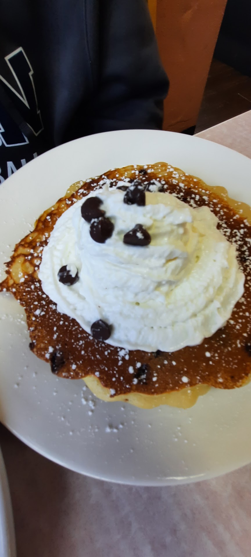 Our son's friend kept it classic with a chocolate chip waffle, scrambled eggs, and bacon. That waffle? Loaded with melty chocolate chips and just the right amount of sweetness. Add the crispy bacon and fluffy eggs, and you've got yourself a solid breakfast winner.