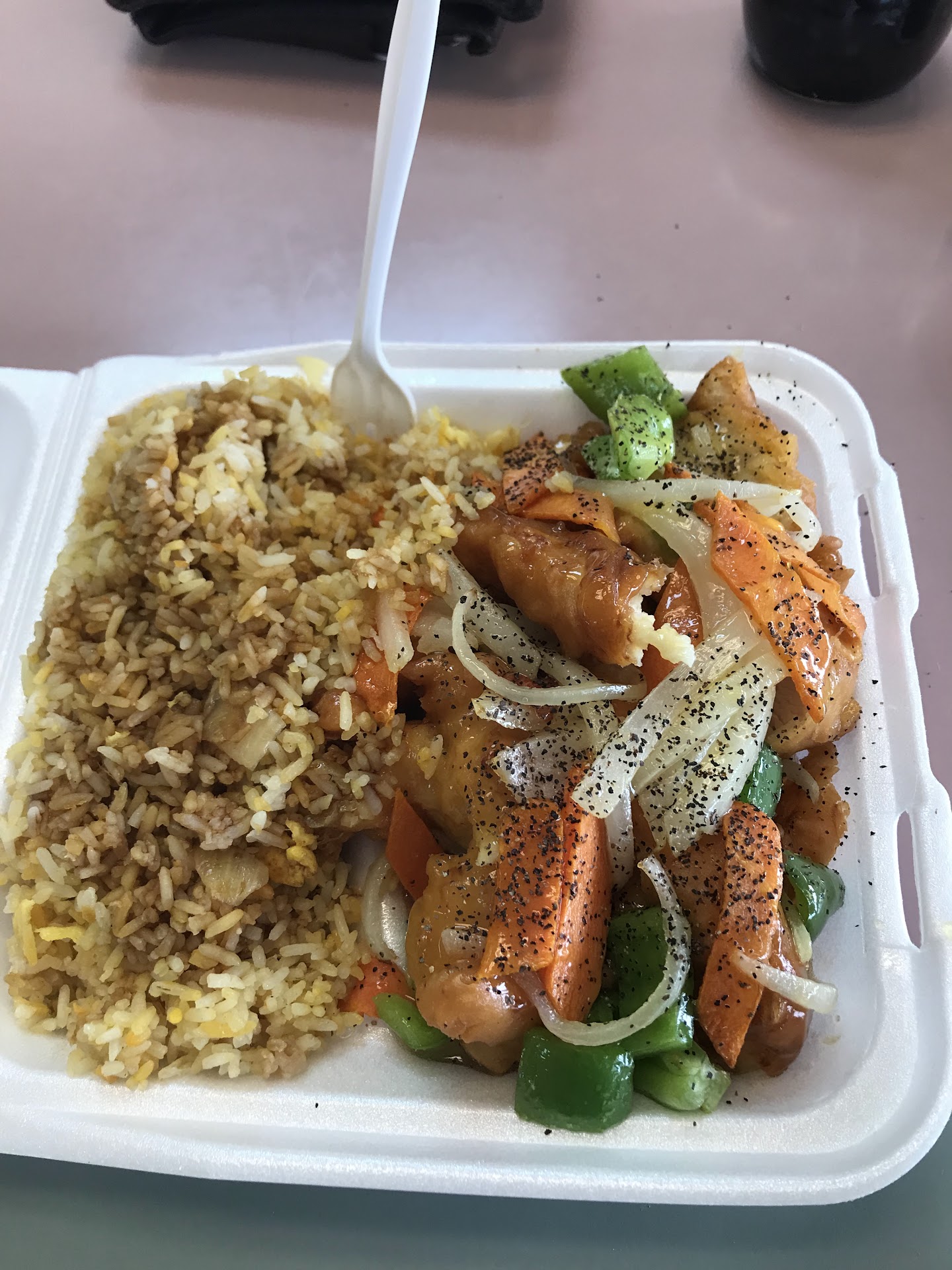 Ordered combination fried rice w vegetables (2$)& extra egg(2$). Family egg rolls. The 1st time I ordered was a struggle because there's NO MENUS!!! the lady was kind & patient(never had fried rice that didn't have any Veggies & not happy that I had to pay extra. But bland rice is a common theme in the area) the rice was okay, some of the veggies weren't actually cooked. But I only received 1 egg roll. But I called back because when my husband picked it up that's when we found out there's no meat in the egg rolls. The lady said the oddest thing." They're very good. If you don't want, it's fine. We already have to stay longer to make more for tomorrow. If you don't want it help us tomorrow. " Soooo... the foods not made fresh? Got it. 2nd time same order w orange chicken. I got all my egg rolls but they forgot the extra egg and I'm certain there's pork. But my container wasn't FULL (nor was it full the last time) If I ADD VEGGIES & EGG & there's only one sized container then SHOULDN'T the container be over flowing? I PAID FOR combination fried rice+PLUS veggies +PLUS eggs... where's my food?! There weren't many shrimp. Just ugh.. went to check the receipt & it's only the CC receipt w the total & not individual...