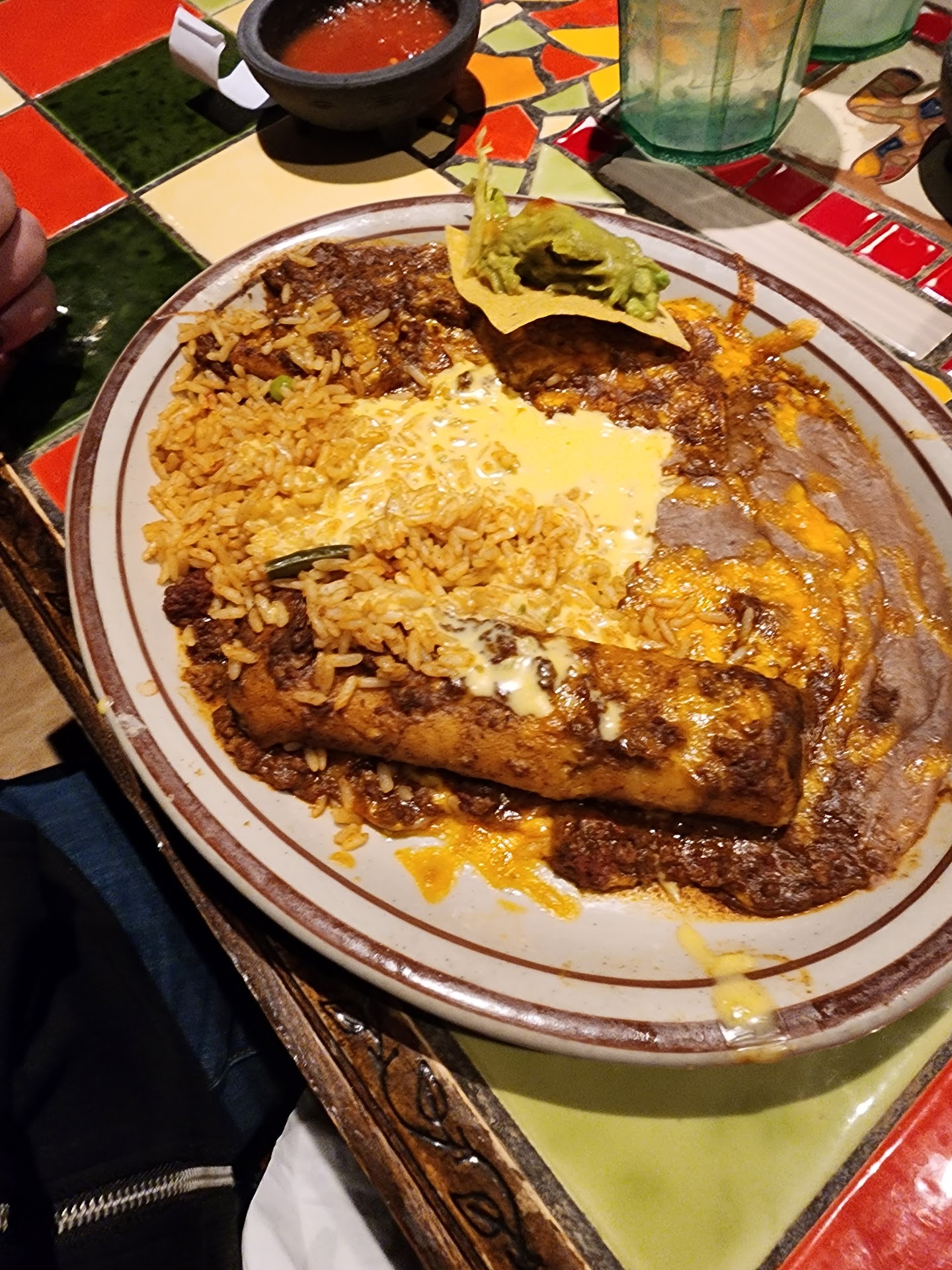 Read moreMy husband is a Rt 66 fanatic, so he’s been itching to eat here for years. I, however, am not a Mexican food lover unless it is actually in Mexico. People have been dragging me to “the best Mexican restaurant you’ll ever eat at” for years (eyes rolling). I agreed to go to help quench his long time desire to eat here. It seems a somewhat small place, but we were seated immediately. Our server, Frederico, was at our table in under 2 minutes and smiled when I asked for the “sissy sauce”, which we’d learned from other reviews is what you ask for when you don’t handle heat very well. My husband ordered the Night Hawk, which apparently is named one of the top 10 best dishes to order. The waiter said, “If you LOVE cheese (he stressed love) then you’ll love it” my husband likes cheese but doesn’t love cheese, so he wasn’t a fan in the end. However, the first few bites he was in love, but the cheese finally overwhelmed him. I ordered a Wet Burrito. I’m not a lover of Mexican food, again, unless in Mexico, or cheese, so I requested Colorado sauce instead of the con queso it’s normally served with. It was without a doubt the best burrito I’ve ever had. I even offered to give my husband half because I’d “never finish it”, but the magical So Delicious Fairy visited, and I ate the entire burrito! Neither of us had to ask for drink or chip refills. Federico just kept them coming, a very observant server. Great food, great service, great historical atmosphere! We’ll go back soon,...
