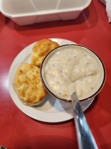Read moreI had the fried green tomatos as a starter and was disappointed to discover that although it was after 11 am, the mashed potatoes were not ready so I was not able to order my original choice, the meat loaf meal (which I have had previously as take out and is heavenly) so I settled on the grilled pork chop breakfast instead. The breading and seasoning on the tomato slices were absolute perfection, as was the ranch dipping sauce. The tomato slices themselves were still a bit too green and firm to my taste, but were passable. My grilled pork chops were a bit tough and could have used a bit of marinade and much more seasoning but I compensated by mixing the catsup on the table with my cup of salsa I ordered to add flavoring. My scrambled eggs with cheese were a bit lacking in flavor as well but perked up nicely with the addition of some of the salsa. The hash browns were a bit too crispy on the outside and a bit too mushy on the inside and again required additional seasoning at the table. The biscuits and gravy were an unexpected and welcome surprise. The consistency of the gravy was absolutely perfect but again the gravy required a lot of additional seasoning at the table; I much prefer for the seasoning (particularly the pepper) to be cooked into the gravy for more of an overall flavor than to be added at the table. The biscuits themselves were a bit on the heavy side and a bit undercooked in the center but were large and fairly fluffy. The portions were HUGE; today is the day after we dined and I just enjoyed my second meal from the LEFTOVERS, so at $9.50, the price is actually a bargain and I highly recommend plate sharing for those with smaller appetites! (Although I am DEFINITELY not knocking the generous portions!) We were fairly disappointed in the lack of prompt attention on the part of the wait staff and would be interested in a return visit at a later time to determine whether it was simply due to a rush of customers in the late morning. We definitely feel that the prices were reasonable for the quality and quantity of food ordered (about $35 for two meals, two beverages and a shared starter) and will definitely plan a...