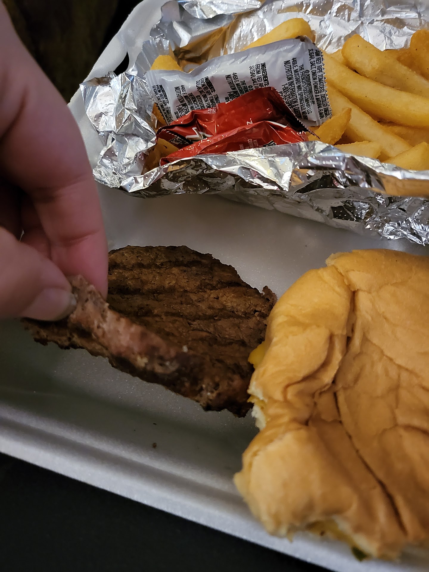 Family and I were visiting from out of town and saw this on Yelp with the name of Golden Saddle BBQ Steakhouse with 4 stars. Upon arriving, we noticed that the restaurant was located in what I would call a rough part of town and that the outside of the building was run down. In addition, the name on the sign was actually Golden Saddle Café (google had it under the correct name though). My wife’s first instinct was to go somewhere else, but we had 3 kids with us and it was getting late, so we took the plunge to try it out. Upon entering, the inside of the place matched the outside, looking pretty run down and decrepit. We were about the 3 or 4th group in there and ending up bringing down the average age of a patron about 30 years. In other words, there were older customers that likely had lost all their taste buds and were only there due to the texture of the food. Not a good sign.