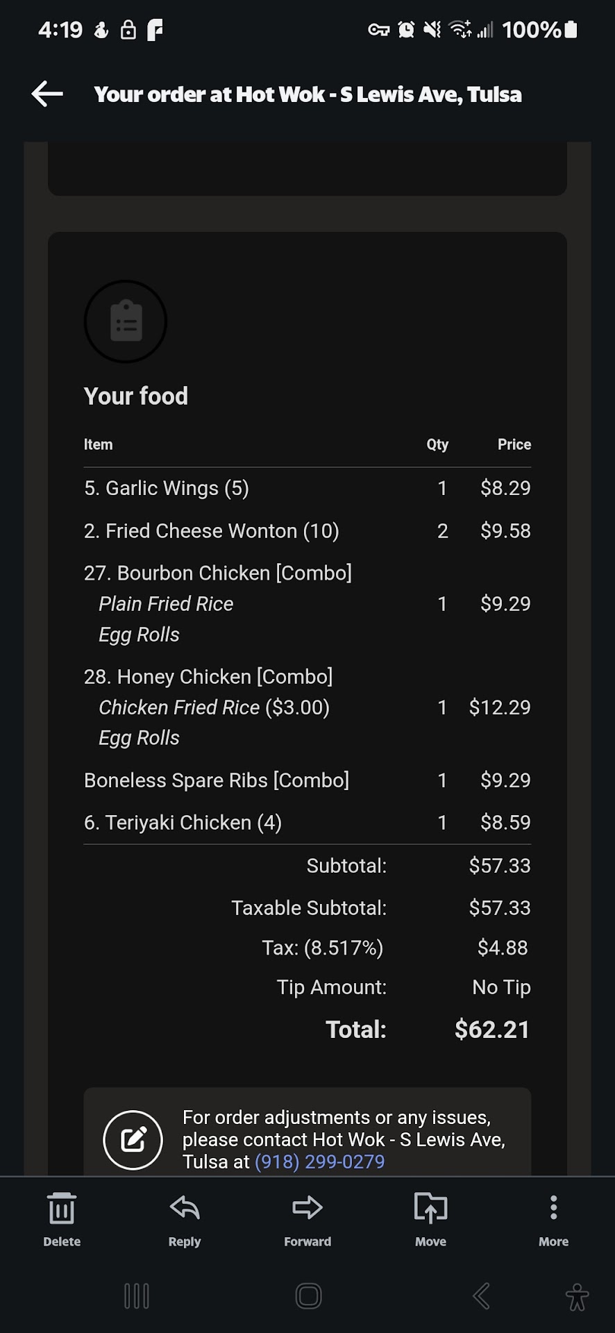 Food arrives almost warm. Plan to heat your delivered food at your home. I was so disgusted, I tried to feed my dog the rice. For some reason, & I trust her sharp sense of smell, she refused the rice. Dog isn't remotely a picky eater. I took her lead & threw the bluntly unfulfilled order in the trash. All that $$ to just line the trash can.