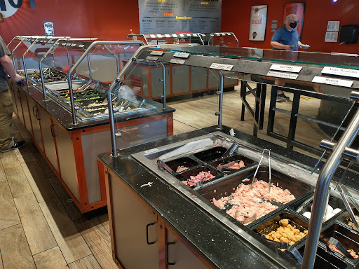 Now I have a peanut allergy. I totally did think to mention it to the waitress since it's a "server yourself" feel and I obviously wouldn't grab anything with my allergy obviously in it. (I'm aware of cross contamination risks). I realized how things are cooked (didn't think about it prior) and informed the cooks I have an allergy. Unfortunately to make a clean/safe surface they needed to clean an area. This did cause a back up. Unfortunately another cook didn't hear the information and the bowl was placed in the wrong area and they asked me to remake my bowl for saftey reasons. So, this doesn't upset me as I now know you should inform your waitress and they hand you a plate that indicates you as a "VIP" aka. Food allergy. This alerts the cooks to pre-clean a spot for you. The cooks stayed very kind about the whole thing even it being backed up some. I do feel bad for being the cause of the back up but very much appreciate their patience and taking care in doing their best to accommodate food allergies.