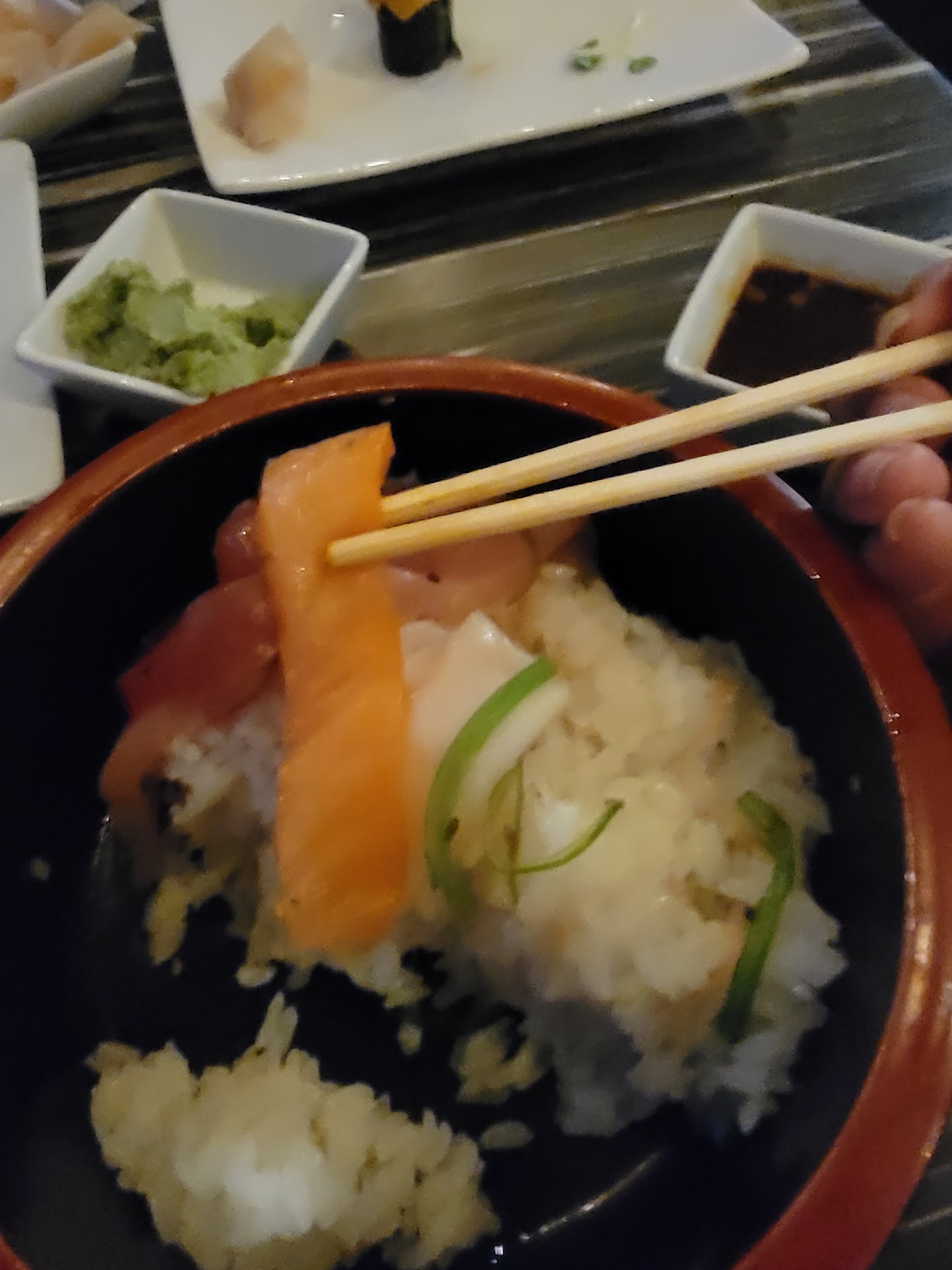 When we told our waitress that the sushi is taking too long to be delivered, she had a bad attitude, didnât even apologize but tried to correct us by telling us we had come in and ordered much later than we actually did! We even checked the time of the text that we received from a friend during the time that we ordered, & sure enough it was at least 55 minutes before we received our order.