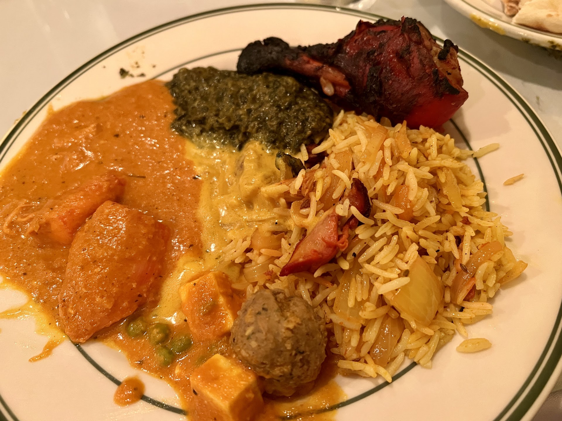 Food was good but the rest of the experience was absolutely terrible. The staff was extremely unpleasant. Any time we had a dish that we weren’t actively eating off of, they immediately took it from us without even asking. It was really frustrating that they would constantly come by and take dishes that we were still using AND food that we were still eating. One of the waiters even took something that we DIDNT EVEN START EATING YET!!! I don’t think it’s right for a restaurant to take food that I paid for without them at least asking first. I would have said something to them but they were taking stuff away so quickly that I didn’t even notice until we got home and I didn’t find it in our leftovers. They also had a rude attitude, giving us the impression that they didn’t want us there. They are not welcoming in the slightest. The whole time we were there it felt like they were trying to get us out. The staff would stand near the table and watch us eat, waiting for us to finish a dish so they could take it from us as soon as we were done. They literally stood right in front of our table as we were putting our food away so they could take every single dish from us the second we were done with them. That was really annoying, and they did it the whole time we were there. At least wait until we leave the table before you start cleaning up! They also filled our cups of water (once), and the water was room temp with no ice. They sat us in the very back corner of the restaurant, even though there were plenty of other tables. Also, don’t go here if you want a peaceful and quiet dinner either. They seated a group of 4 young adults behind us that happened to be quite loud and obnoxious. The people being loud isn’t the restaurant’s fault, but they seated them directly behind us. There was a plethora of tables for them to choose from and they decided to place them as close to us as they could!! The tables are also insanely close together. There was hardly enough room to pull my chair out with someone sitting behind me. Lastly, the vegetable samosas were quite obviously not fresh. They came out seconds after we ordered them and they were only slightly warm. If you choose to eat at here, just order takeout to save yourself from an awful experience. We weren’t even there late. I could maybe understand that kind of service if it was near closing time, but we were there HOURS before...