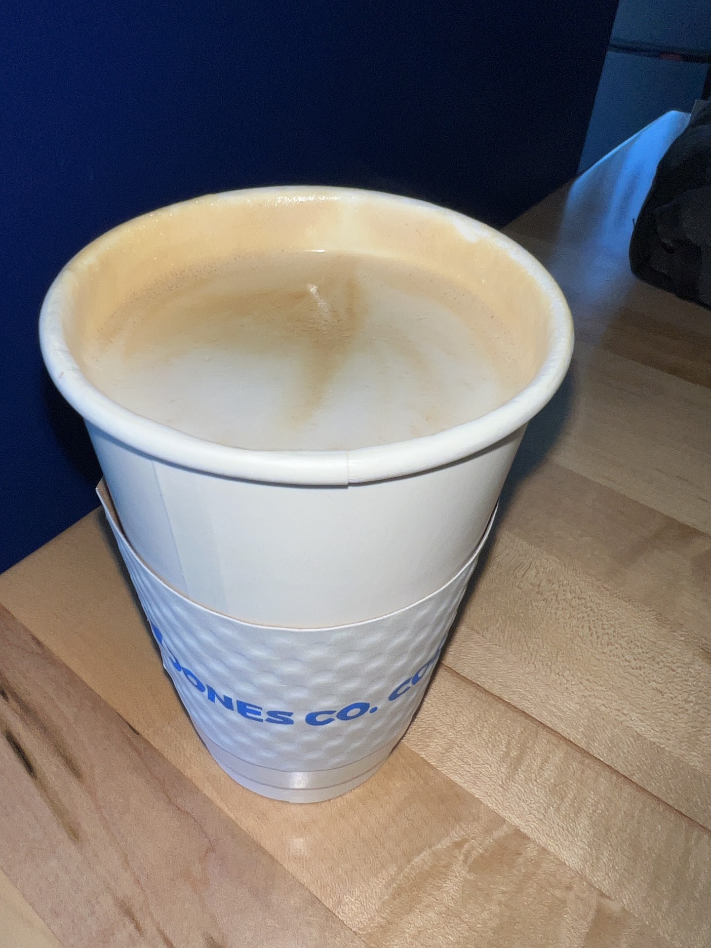 My large mocha came to $8 before tax and tip. Given that it had four shots of espresso, the price seemed pretty reasonable. Youāre definitely getting your caffeineās worth with this drink! Overall, Jones Co. Coffee is a good spot for anyone looking for a chill place to sip on a strong cup of joe...