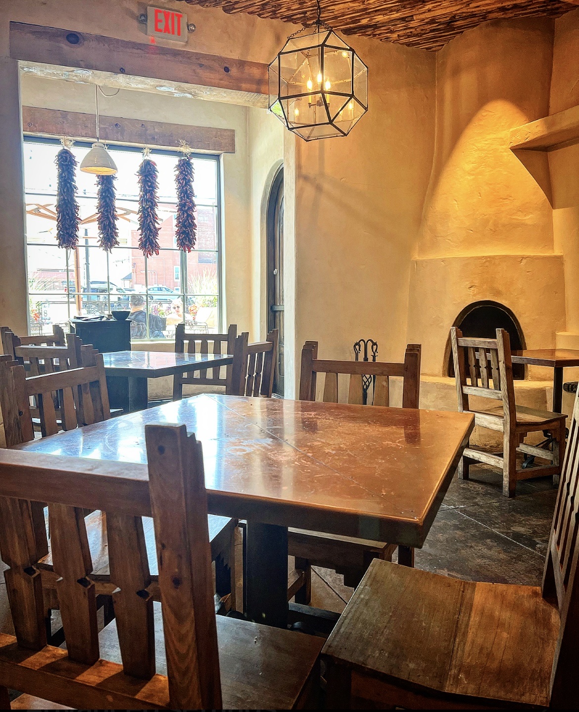 La Tertuliaâs atmosphere features rustic motifs fused with modern flair. The space evokes the essence of adobe architecture, with copper tables, a concrete floor, modern New Mexican art adorning the walls, and a wood-paneled ceiling. The ambiance is relaxed and comfortable, seamlessly blending a contemporary take on classic New Mexican aesthetics. Service was provided by Mekayla. She is passionate and knowledgeable about the menu. She has worked at La Tertulia for several years. Our water glasses were filled, chips and salsa topped off, and plates swapped out between dishes.