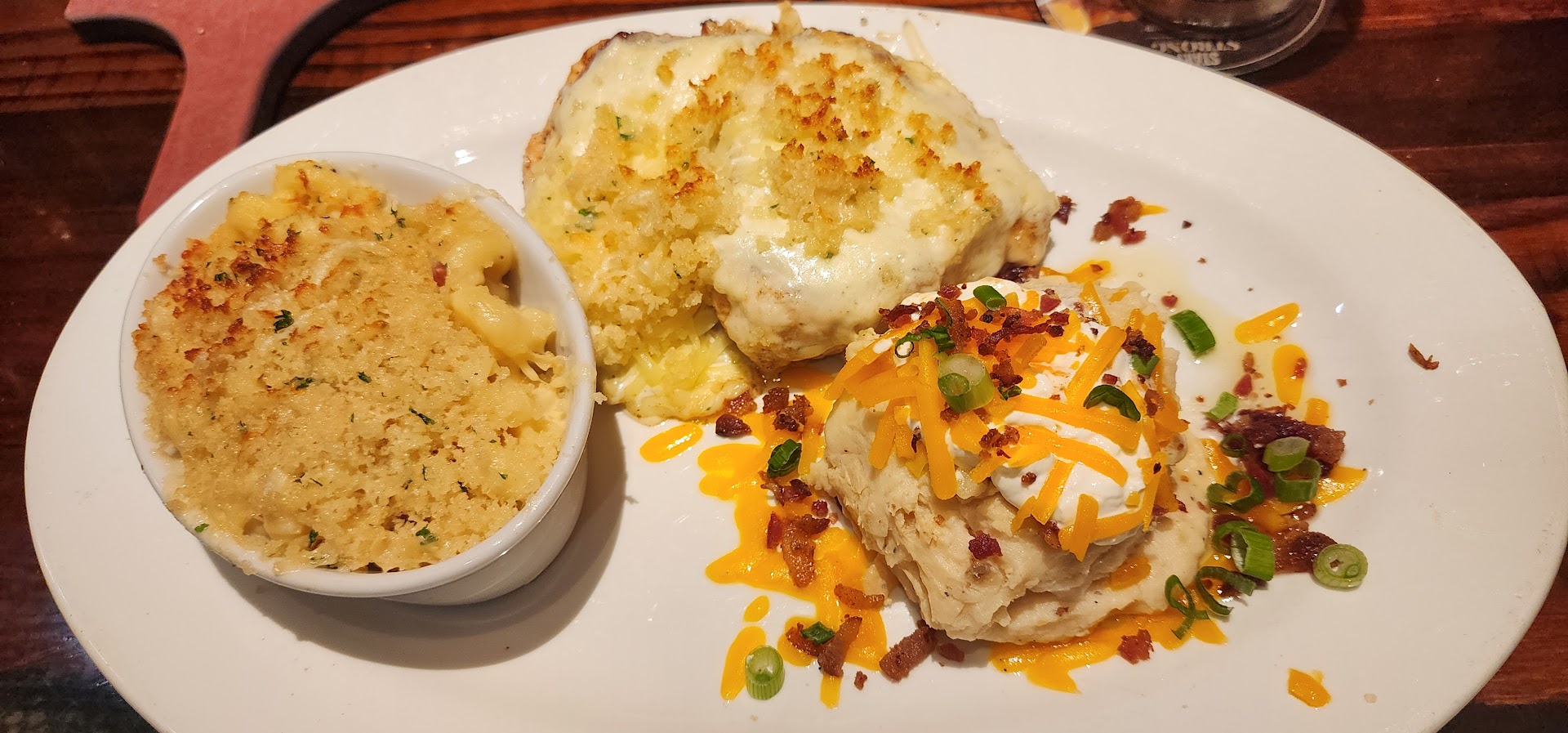My husband got 2 appetizers as his meal. He got the wild west shrimp and firecracker chicken wraps. It was alot of food for being an appetizer but they tasted like they were previously frozen so that was disappointing. Was hoping it was all fresh.