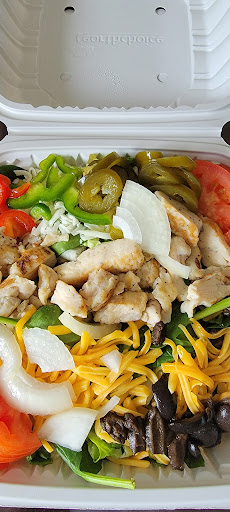 The food though was not really impressive. I got a salad, which I ordered without jalapenos, but it still had jalapenos. The salad was served on a dixie paper plate, and my wife's was served on a different style styrofoam plate - it didn't feel terribly professional. The ranch dressing was separated when I got it, and it didn't quite taste like ranch. The chicken was rather soggy, and I was hungry so I ate it all, but maybe their...