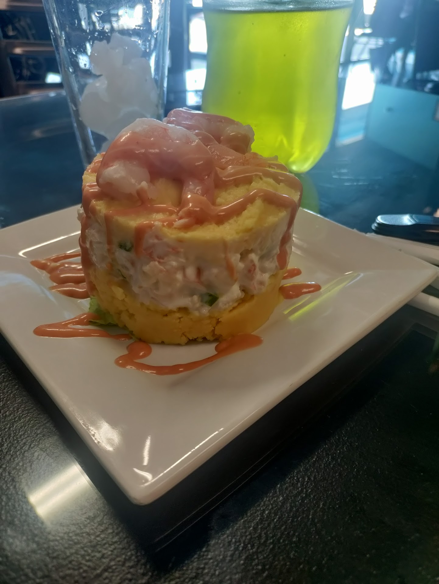 Start your meal with the Causa! Causa is a delicious, layered mashed potato salad, seasoned with avocado, onions, egg, and Peruvian yellow pepper. In between the two layers of the mashed potatoes is a layer of chicken or shrimp (your choice) mixed with what I thought was a mayo based dressing, green onion and other spices. We ordered it with shrimp. It was topped off with a slice of hardboiled egg, an olive. A delicious appetizer or even a meal by itself. We were in the restaurant at 2:30 right between the busy hours. There were still a half a dozen patrons enjoying food in the small dining area. Cecilia the owner was busing tables and serving customers. Super nice lady! It was a pleasure to meet her. The walls of the restaurant are decorated with Peruvian art and souvenirs. In the background TVs are playing soft Peruvian music while showing the beautiful landscape and animals of the country. Upon entering were promptly greeted and seated. Drinks first. Manos has a large selection of South American beverages. I donât think unsweet iced tea is on their drink menu. I didnât know, but, that is what I asked for. Cecilia said she would make a fresh pitcher and she did! I had been studying the menu prior to arrival. The Jalea de Pescado kept catching my eye. It is Sea Bass seasoned with garlic, salt, and flour then fried for 2 minutes. This is some awesome crispy perfectly fried fish accompanied with perfectly fried Peruvian yucca, Peruvian boiled white corn, and a crunchy sampling of mountain roasted corn. The menu describes a âcreole onion sauceâ on the side for the fish but, it sure tasted like bottled tartar sauce to me. There was a massive amount of fish on the plate; easily enough for two people! The Peruvian boiled white corn was nothing exceptional. It was an interesting to try it for the first time though. It was large kernels of corn similar to hominy, but with more texture and flavor. My wife was there to have the Mofongo with Shrimp. This too was a big portion of food. A good sized bowl filled with lightly seasoned mofongo, large shrimp, topped with a flavorful sauce that had a taste very similar to Thousand Island dressing. Very good Peruvian/South American Cuisine