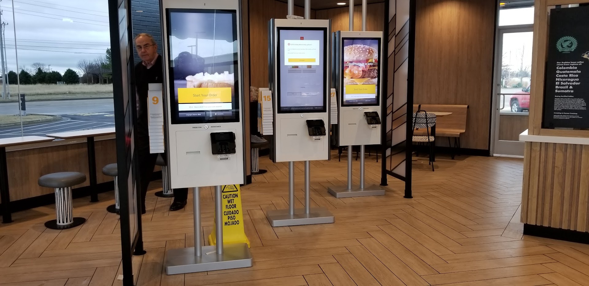 Luckily I was with my 75 yr old father, or he'd have gone without breakfast, just out of frustration! The big breakfast was not what I remembered, and there were limited options, to "customize" your order, at the kiosk. The scrambled eggs left a bit to be desired, but when you've been on a liquid diet, you'll eat about anything put in front of you. Lol.