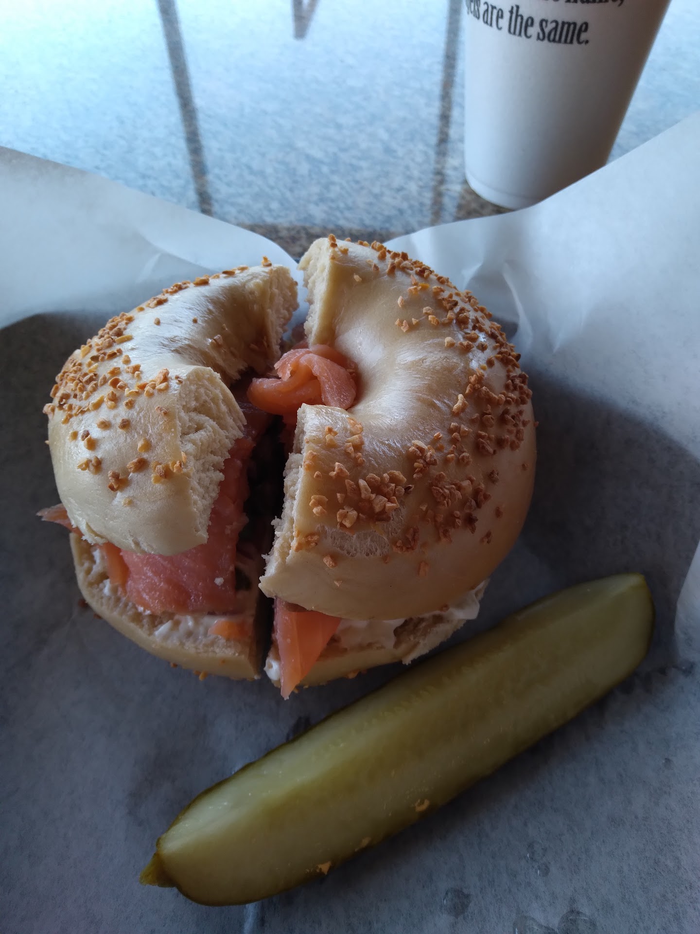 Ā Ā Ā Read moreI gotta say I was very disappointed with my experience here. I wanted a good bagel since Einstein bros isnāt the same anymore and got rid of my favorite bagel. I went through the drive thru. I got the spinach parmesan and everything jalapeƱo. They didnāt have the everything bagel once I got to the window after saying they did. I decided to just remove it instead of choosing a different bagel. It was already $10 for 2 bagels with cream cheese. The refund was for $2.50. I tried telling the drive thru lady that the amount was wrong, but she rather try to explain it to me like Iām stupid instead of listening. When I opened the bagel I was a lil confused. I was expecting it to have Parmesan on the top at least. But nope it looked like a dark plain bagel with something inside. The bagel was very dense, as if it didnāt rise properly. It was very hard to eat. The cream cheese was the saving Grace. The garlic herb cream cheese is really...