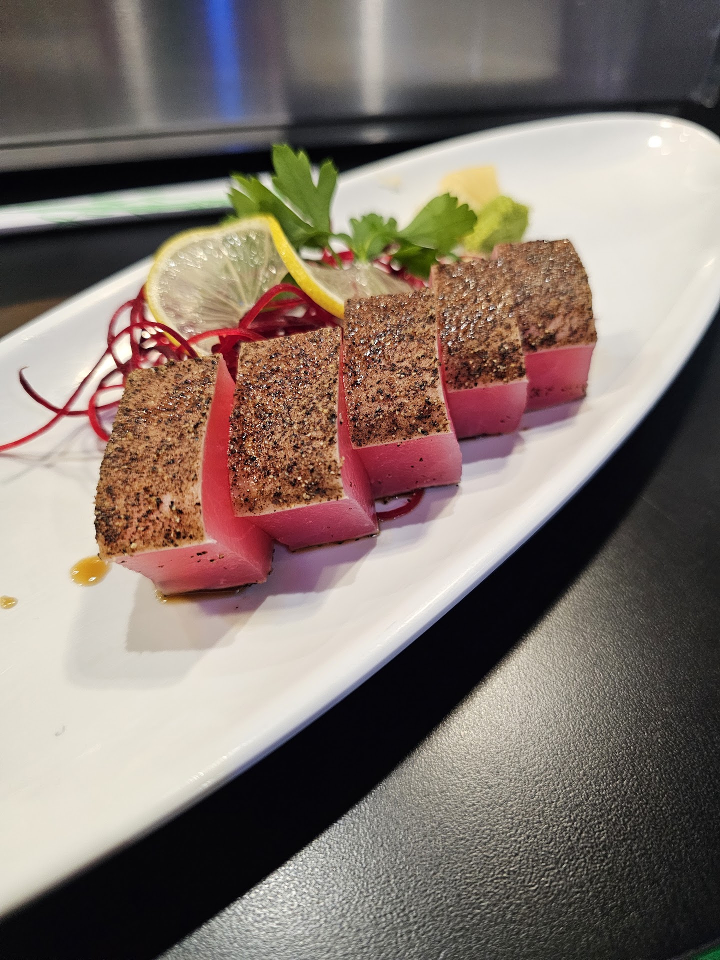 We sat at the bar, and the chef was very kind and accommodating. We had very sweet servers that made sure we had everything we needed as well. We ordered the Colorful roll, Tuna Kawa roll, Pepper Tuna Nigiri, and Pepper Tuna Sashimi. Everything was absolutely perfect and so delicious! The fish is extremely fresh, and the flavors were out of this world. This was my first time here, and I will now be going at least once a week. I was very pleased from the moment we walked through the door to the moment we walked out.