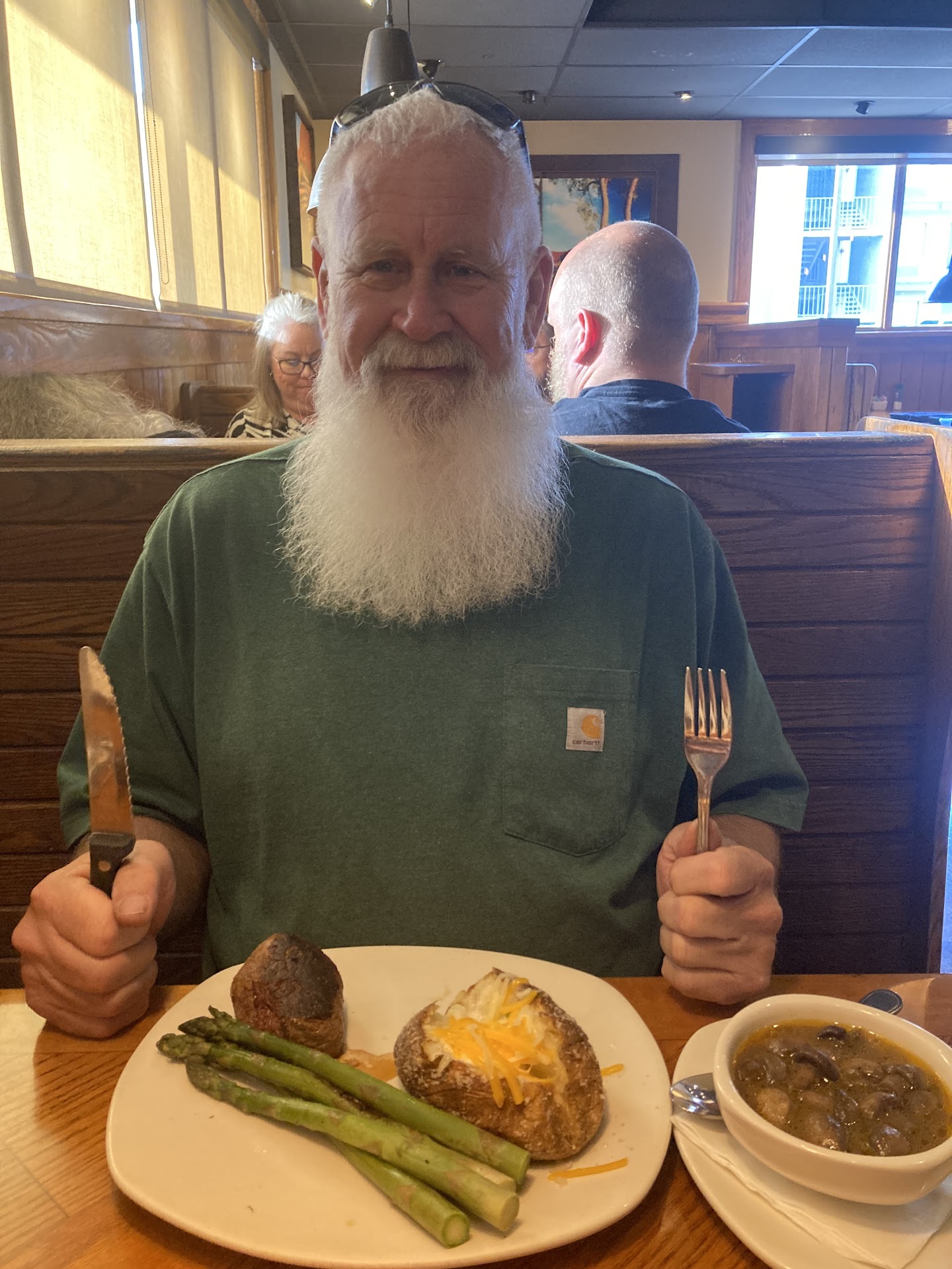 Read moreLet me begin by saying, if I could leave a ten star review for this team I would do so immediately. Three weeks ago I found myself having to drive from Nashville to Tulsa with no time to plan ahead. My 85 year old Dad was lying in the hospital in critical condition. After a few days of refusing food, I was able to coax him in to his favorite meal…Outback’s burger. I arrived before they opened so as to get Dads lunch before the rush of noontime diners. The owner/manager greeted me warmly and staff of gold ensued. Ella, asked what brought me in that day. I explained the situation and Ella immediately grabbed me a drink to enjoy as I awaited my order. Once my meal was ready to go, she handed me a card to my father that the entire team had signed with their well wishes. The way my Dads face lit up reading that card and watching him enjoy food for the first time in two weeks melted my heart. I returned to this Outback to pick up grilled chicken for Dads dinner. I mean, if you’re on a roll you stick with it. The team was even lovelier, asking how my father was faring. I will absolutely return here every time I visit and encourage all to go in, get to know this truly wonderful team and get a great meal at the same time. Thank you all so much for lightening a difficult time and making an incredible man feel...