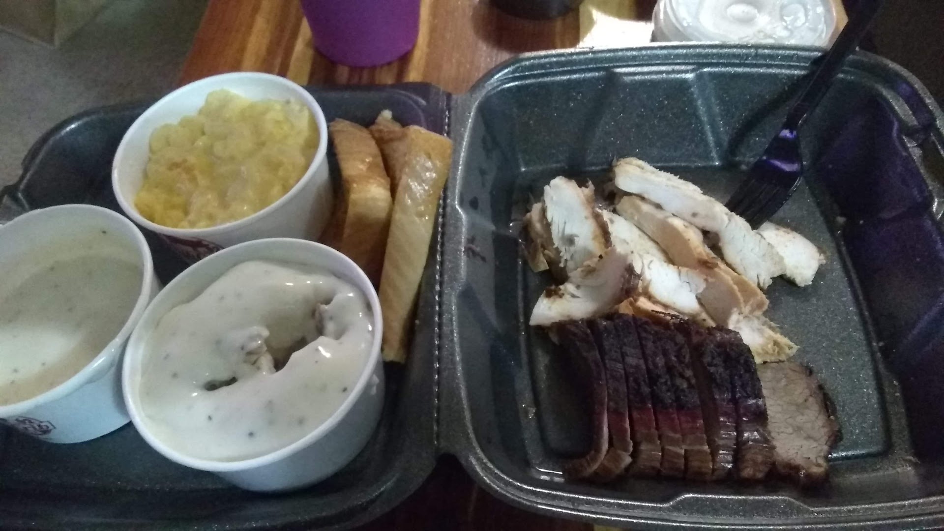 Ā Ā Ā Read moreJust went here for a to-go order. I had high expectations because Iām from sapulpa and usually go to the sapulpa location but I was in Tulsa this evening. When you go through the drive thru window, you can see inside and it was DISGUSTING. Cups, food, etc all over the floor. The cutting board area was also disgusting. I was hungry and it kinda ruined my appetite but I gave it a chance? Lol. The sides were decent (mashed potatoes and fries). But the pulled pork meal that I got was horrible. It was all fat. It smelled strange. My husband got brisket and his is good. The inside looked nasty. Iāve worked in the restaurant industry since I was 13 and Iām now 24. I usually am super understandable. But no. I will never go to this location again. They werenāt busy either but I think they were about to...