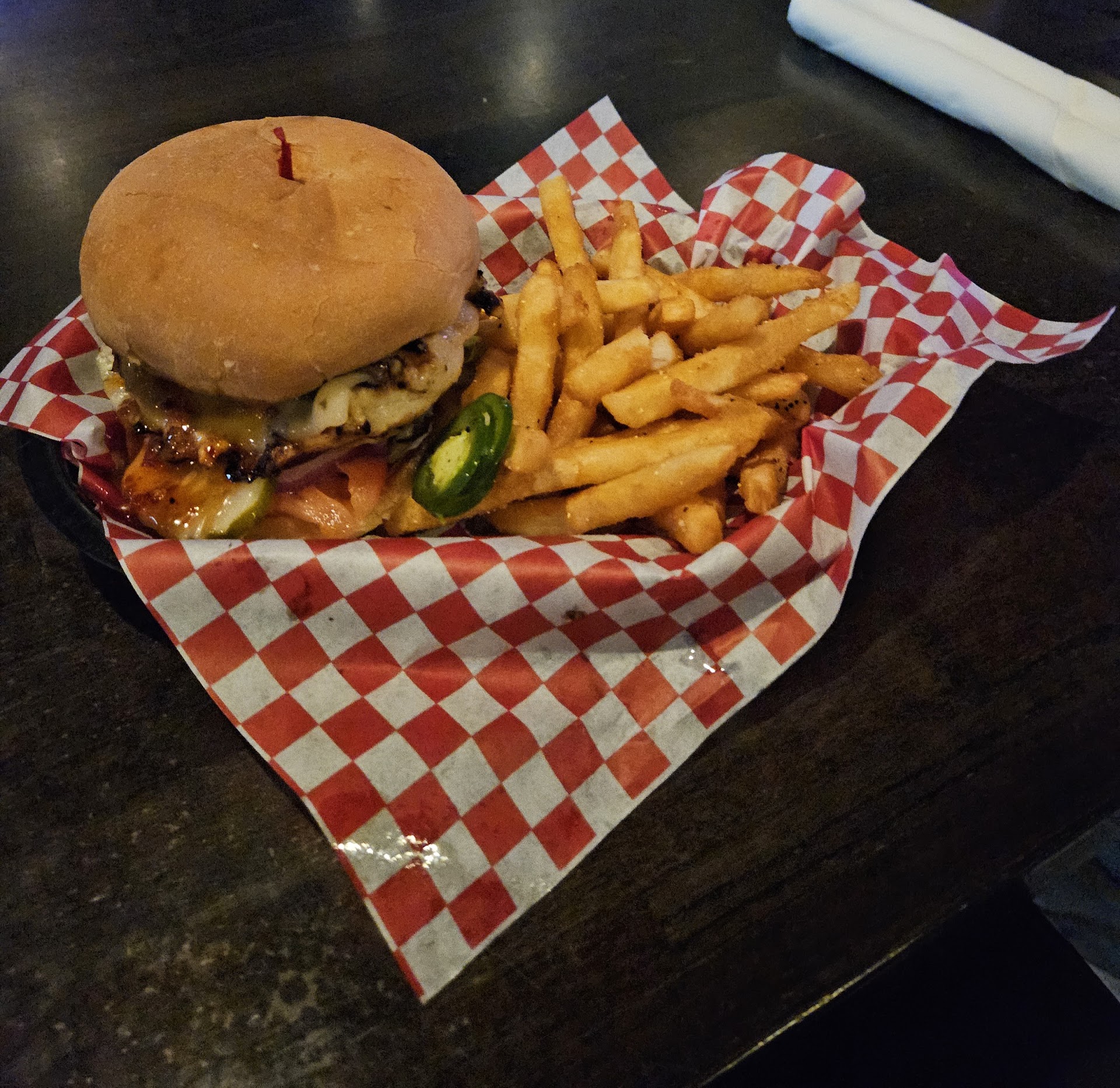 Read moreThree of us went for the first time on Friday night. The service was great, and the atmosphere was cool, too. They had the Sweet & Spicy and Fish & Chips, and we had a few drinks. The food was good. Total cost $109 tip included. Update Went back on Sat evening with a friend & we had fried wantons, a hangover burger & a philly cheese steak w/extra cheese & macoroni & cheese, along with a few drinks. (Their fries are really good, btw). The wantons and burger were good, but the cheese steak was overcooked with no extra cheese & macoroni had no seasoning at all. I was refunded for that meal. The service was great, though! Total cost $84.80 tip included. Update Went back for lunch got the Lemon Pepper Wings & fries....