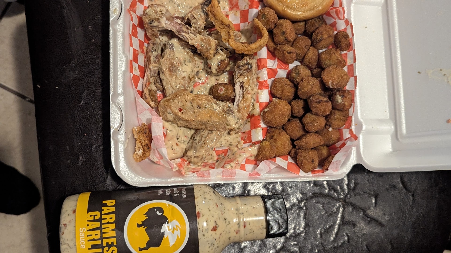 Read morei have tried their chicken wing / fries and philly steak cheese/okra. The chicken wing where not very meaty and fries where frozen. Wing saturated with the sauce bbq. The philly steak and cheese was well portioned but to much added salt sprinkles on steak and cheese. Okra to much salt. While preparing a food dish salt is your best friend and worst enemy. Recommend that they try cavenders greek seasoning on your chicken and fries. Again be cautious of the amounts of seasoning. The entrance door is not working properly. All 5 container modular’s used here have double doors. Recommend using one of these other egress for entrance.. this will be more cost effective than repair or door swap. contact box yard...