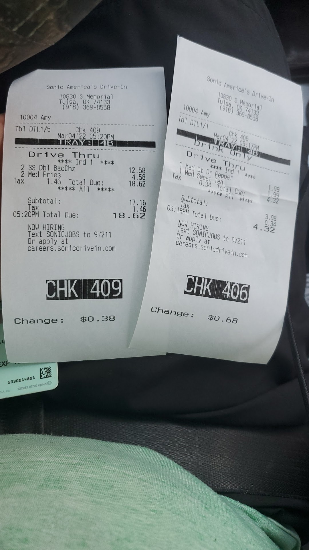 Read moreSummary: 1 trip perfect, the other an outright catastrophe. Bad enough that i will never, ever give this location another chance. First time at this location, was impressed. Sign said short staffed, but they were still quick, and the food was still great. Got a toaster sandwich, slush, Sonic blast, all were perfect. People were friendly. I watched 1 guy through the drive thru window mopping and sanitizing every square inch of counter, floor - everything, like a man on a mission. Sanitizer galore. I half expected him to spray down the guy at the window. That place is cleaner than most hospitals. Was very impressed by the people working and will definitely be back 10/3 update: went back, waited over 10 minutes in the drive the, no one even said anything into the speaker. Absolutely abysmal. May 5, 2023 - 2 years later. Accidentally came to this location. Exact same experience. No one is actually working or something. It's like it was abandoned. 2 years and the same terrible...