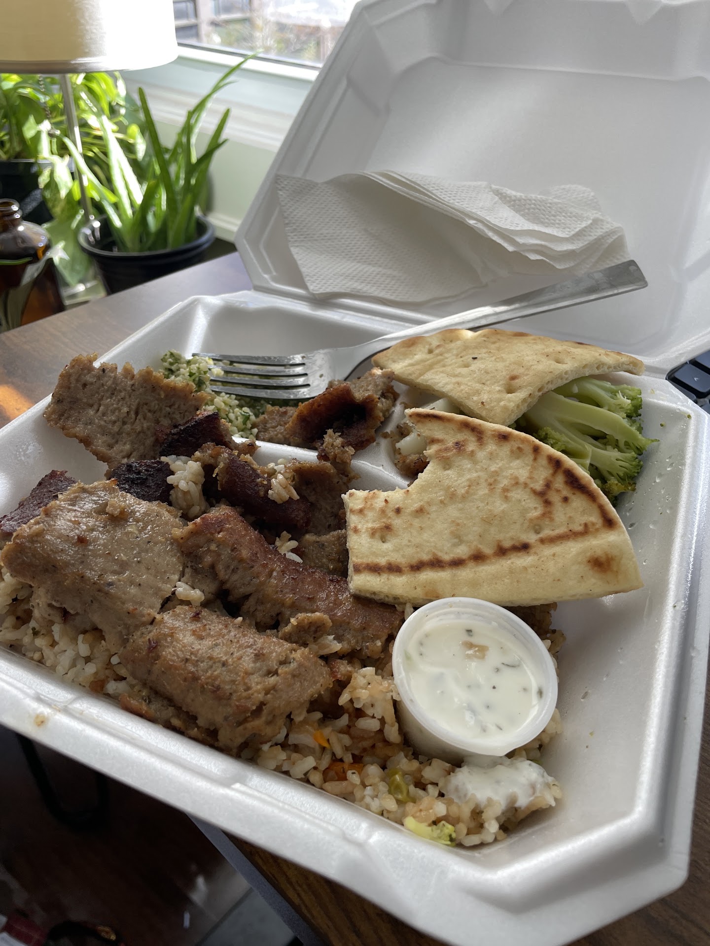Read moreWalked here while in town at a conference. Great as a take out place, no doubt. I can see why locals like it as an alternative from the usual franchise lunch spots around. We walked in and tried to review the menu, and there was an odd sense of urgency. As some other reviewers mentioned too, I felt rushed during ordering. But the men behind the counter were nice, and quick to serve, just a bit intense. I simply got the gyro on pita instead of the platter. It was a good gyro. Meat was perfect, onion was cut thick and was fresh. Some of the lettuce could have been a bit fresher though. The tzatziki sauce was provided in a small plastic container - about half of the amount of sauce I'd expect for a gyro. Tables, disposal bins, and other spots in the guest space weren't very clean - as lunch take out seems to be their primary concern, I can see why that may tend to slide. But they should find time to keep up the cleaning. If you're craving something Greek while you're in the area, keep this place in mind but don't come in expecting fine dining by...