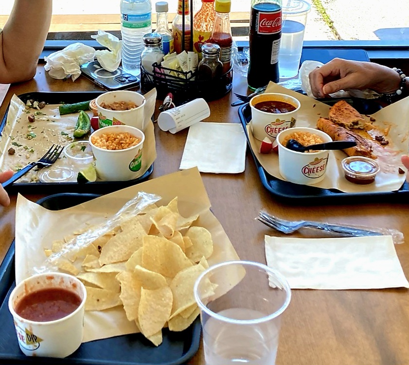 Eat Fresh Fresh Fresh and lots of it. My wife had the three chicken enchiladas with the green sauce. Yeah, I know you like queso, but if you want to taste some of the best green enchilada sauce around, try it. Fresh made. Tomatillo, cilantro deliciousness smothering three tasty flavorful chicken enchiladas. I had the amazing Nachos Supreme. It is unusual for me to order nachos, but I was due for a change. This is a massive plate of food. Share. No scrimping on the ground beef. I couldn’t finish. Then there are the three magic bottles of salsa. I couldn’t put the red one down. I almost drained it. Check the pictures.