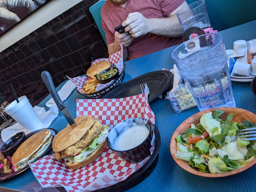 Came here on the reference of a friend who lives around the corner. The 50s diner decor is apparent immediately and with warm welcome. If you're into kitschy 50s drive in theming, this place has it to heart and does it well. We went on a quiet Saturday afternoon just before close, and a very nice gentleman brought us to our booth, and immediately changed a menu when he noticed it wasn't cleaned. I didn't quite hear what he had said and thought he meant he was going to clean the booth, which did have food strewn a bit on the floor, but he didn't reference it at all. We knew it was near closing time (we arrived at 2:25 and they close at 3) so we tried to eat and be on our way quickly. I ordered their "famous chicken fried steak sandwich" which was $10.95 at time of posting with a side salad, and the kid ordered the 3 mini pancake meal with bacon and a root beer float, and the boyfriend got the Mediterranean burger with fries and a lemonade. A few things to note: service was prompt and friendly; if they were trying to rush us out the door, I couldn't tell. The portions are far larger than my Californian appetite was anticipating (the kids pancakes were enormous, she ended up only eating one and packing the rest), as we all balked when our plates arrived (my salad arrived first, which was a little weird to me as I thought it was a side instead of an appetizer, but ate it when my burger arrived nonetheless), but for the price, it's a great deal. My sandwich was alright, but the chicken fried steak almost immediately fell apart. I cut my sandwich in half so I could start at the heart of it, which was juicy, slightly challenging to bite away, balanced in flavor, but a bit single dimensioned in flavor despite the white gravy (which mainly tasted like a creamy pepper sauce. Good, but the burger needed some acidity to cut through the fried meat could have benefited from either BBQ sauce or even something as simple as A1 or ketchup, IMHO), and I felt like the best part of it was the butter grilled buns. Boyfriend's Mediterranean burger was good, ladened with olives, and cooked well, but he admitted he's had better burgers, but loved the olive flavor enveloping it all. The kids pancakes were fluffy, well prepped and hot, and perfect for her to rip apart and dip in a nice warm syrup along with two strips of crunchy, perfectly cooked bacon. We also ordered fried mushrooms to go as we knew we wanted them but didn't think we would be able to finish the (we were very right) and the order is at least a pound of white mushrooms halved or quartered, chicken fried and served with ranch. Delicious, but very filling and hefty. The root beer float was acceptable by the young one, but I noticed the vanilla ice cream in the drink was quite icy. I'm not sure if that's a bug or a feature (perhaps it's beneficial in their floats?), but I prefer smooth and creamy ice cream in my floats. Our check including the $10 tip came out to $55, which, for the amount of food, we agreed was a deal, but likely average for the area. The parking is spacious and plentiful, the service and decor welcoming and polite, and the food was palatable. It was worth coming by once since I'm not from here, but I'm not in a rush to return. I'm not sure how to suggest this place beyond ambiance, since I felt like the food was just decent, but I think it's worth coming here to try the food for yourself. The price, service and food portions are what earned this place this place 3 stars, but I would only recommend trying this place if a friend suggested it and you trusted their taste, as it's all American greasy spoon diner food, which can be a hit or miss...