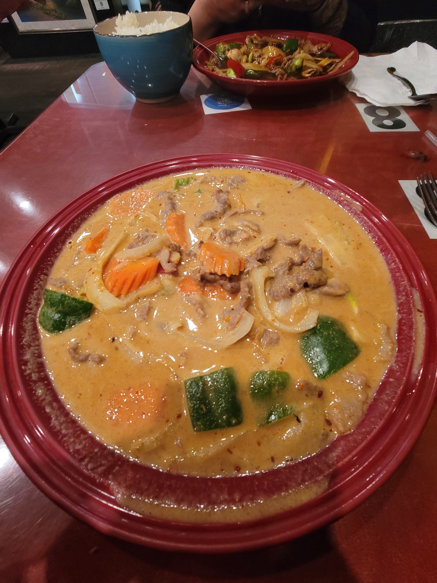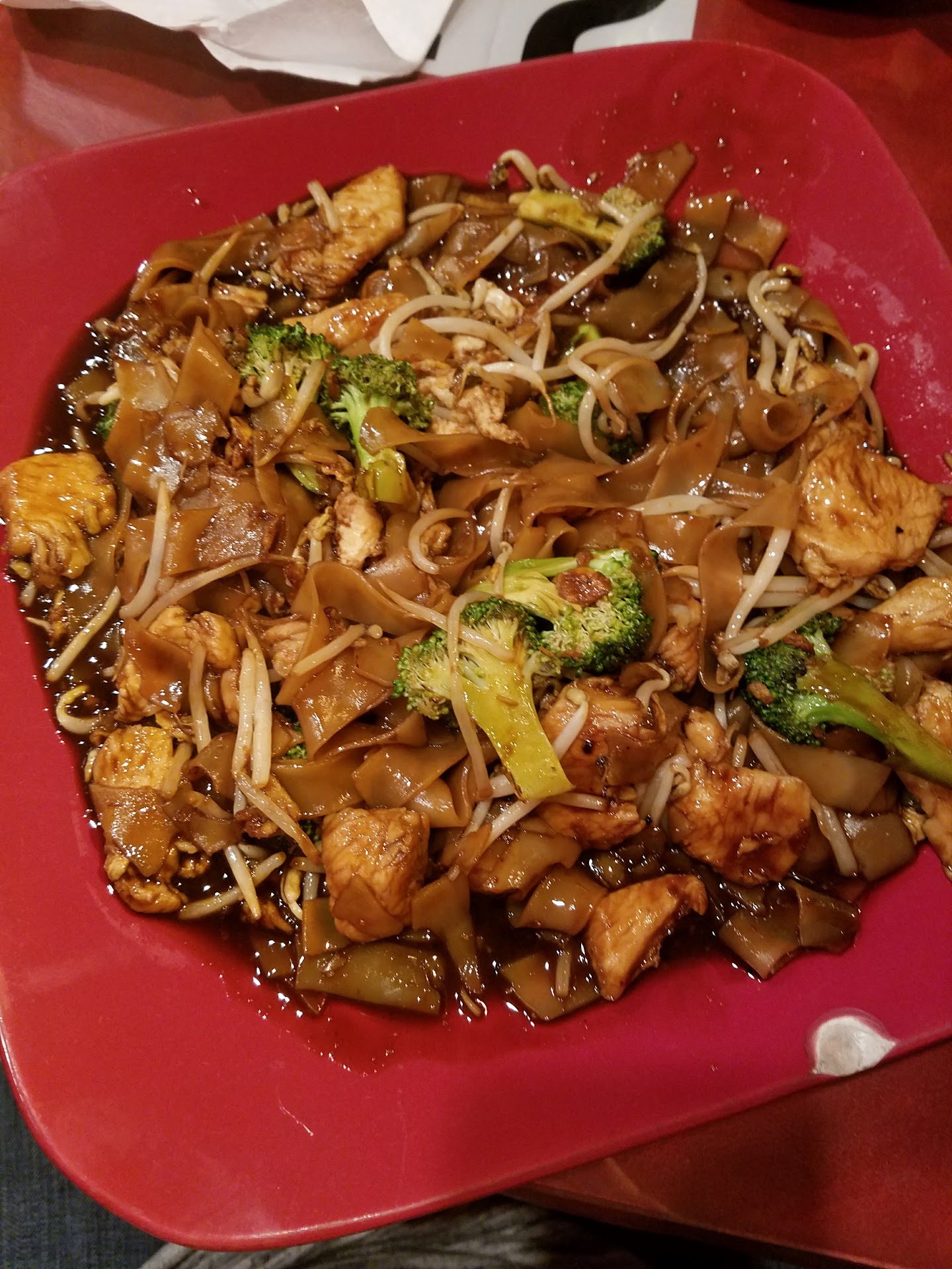 It's been two months since I tried to eat here, but someone I shared my story with told me to write a review since they'd had the same experience. I love Thai food. Nothing goes back. I love it all. Pad See Ew is always good. In Seatlte, Dallas, Germany, Denmark. It's always the same. Not here.. The dish arrived and it smelled 'off' ... and a little like a stinky foot. And the noodles were not the normal wide rice noodles like I'm used to seeing, but fettucccini noodles (hard to see in the photo but I think you can tell). And the entire dish was very soupy; the sauce was so thin it didn't coat the noodles like we're all used to seeing but runs off to the bottom of the plate so it's really soupy. This picture was AFTER I had ladeled a bunch of the liquid off into a side dish. The taste was NOTHING like any Pad See Ew I've ever had. And I love this dish everywhere I travel. So when the gal finally came back, she saw that the entire dish was there and didn't ask a thing. I asked, "What is this?" as I was SURE that they had brought me the wrong thing. They said it was Pad See Ew, and I told her (with a sense of humor, trying to break the ice) that it wasn't like any Pad See Ew I'd ever seen before and noted that it didn't taste right and had an 'off' flavor and smell. She actually acknowledged that she was from California and that it wasn't like anything she'd seen before either, but said that is how it is made in Tulsa. Um .... I had to nearly beg for a replacement meal and said I'd try the Pad Thai. It arrived, and I was thankful until I saw that it too was a weird version of Pad Thai, also in runny sauce that made the dish a bit soupy. At that point, I ate one of the chicken satay skewers that were exceptionally overcooked and came with an odd peanut sauce that was in a 'scoop' form (literally, it was a firm scoop standing up on the plate -- should have taken a picture). It seemed like a peanut sauce base they didn't know they needed to turn into peanut sauce. I finally gave up as it was clear this was not a normal Thai restaurant. I told them, "I just didn't care for either" and left them intact (aside from a one bite sample from each of them) and they said they'd only charge me for the chicken and ONE of the dishes I didn't eat. Their attitudes were terrible, and because I just wrote this one off as a total loss and didn't argue, I'm confident they didn't care. They were, in fact, a little aggravated that I didn't want to pay for both of the dishes. NEVER again. I am bewildered by the good reviews. Maybe their curry dishes reviewed positively are the way to go. Never having had 'bad' Pad See Ew anywhere, this was completely unexpected. Very odd. Next time, I'll drive on to OKC for Thai.