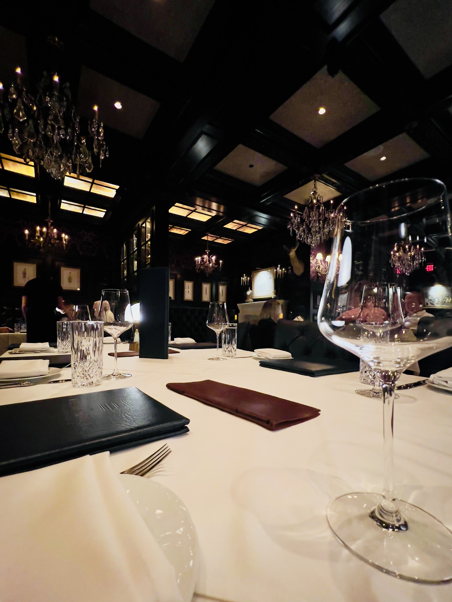 Entering through a side door and descending into the restaurant gives it an exclusive, almost secretive feel. The ambiance is cozy yet sophisticated, with dark woods and crystal chandeliers setting a scene straight out of the 1920s. It's the perfect setting for a special occasion or when you're in the mood for a memorable dining experience that feels both intimate and grand.