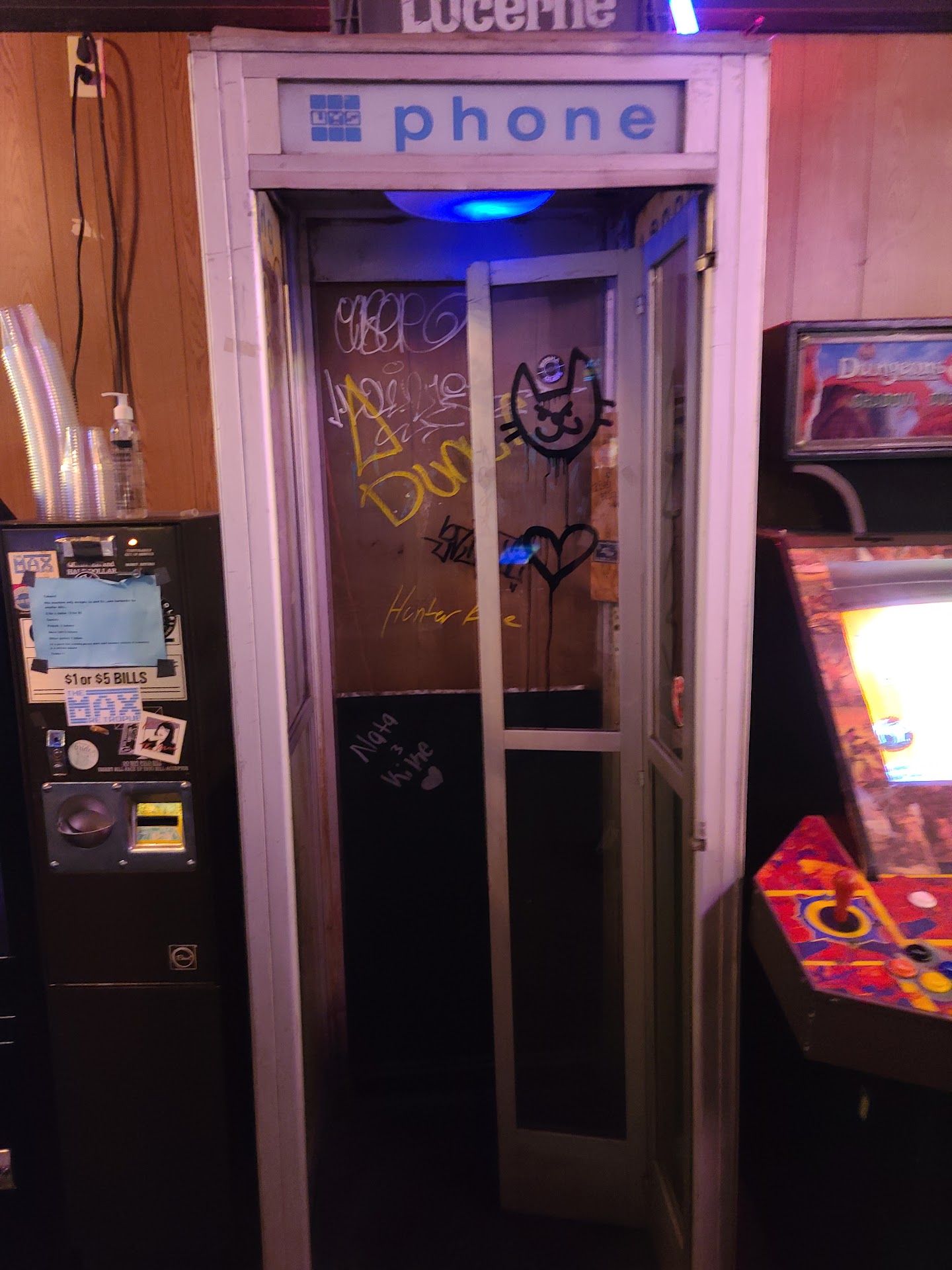 A bit disappointing as an arcade, and the website clearly hasn't been updated in a while- Token Tuesday "free play" is now "you get 5 tokens if you buy a drink", still a good deal but a bit irritating. The disappointment comes in how few games are actually what they say they are. The only arcade games that are all original parts and don't use emulation or a bad replacement monitor are RoboCop, Macross, Ms.Pac Man, Dungeons & Dragons Shadow Over Mystara, Star Wars Trilogy Arcade, Simpsons Arcade, Tetris, Golden Axe, and Street Fighter 2. Of those, the only ones that are taken care of and play well are Macross, Ms.Pac Man, Star Wars, Simpsons, Tetris, and SF2. The majority of machines, be it OEM, subpar refurbishments, or emulation, are quite poorly maintained, Out Run has a sticky gas pedal and Golden Axe has a SUPER burned out CRT screen. D&D's screen isn't as bad but it has a weird effect where it will bounce if the frame cuts to a different shot, making the eyecatch demo seizurific. Another issue is most games have their sound straight up turned off, which makes them far less fun to play. In contrast, the pinball is all quite nicely taken care of, based on how they look. Unfortunately I wasn't able to confirm they all play nice because it costs 4 tokens as opposed to the 1 token of the arcade games, I like pinball but not that much. I'm not big into alcohol which is why I went here solely for the arcade, but the Tron I got to get my 5 tokens was pretty good, even if it was weirdly strong while also being sweet. Men's room is a mess, graffiti EVERYWHERE [like actual gross offensive graffiti not just a cool decorative choice] and no door on the stall. Also it smells in here lol