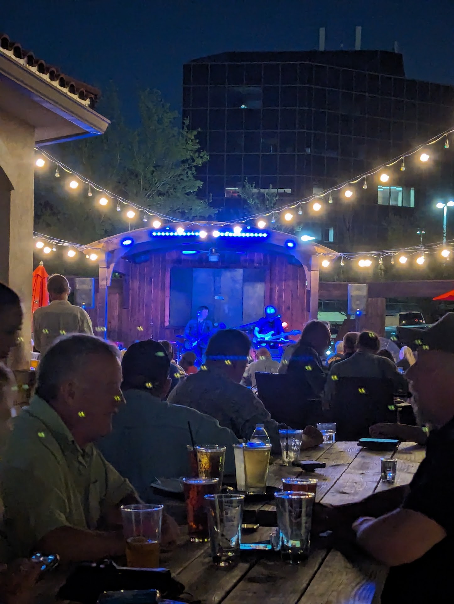 Read moreWe ate here for the first (and last) time on a Friday night after work and were really impressed with all of the outdoor seating. The service was a little slow, but our waitress was very nice and attentive once we finally were noticed. However, the food was over-priced and we had the absolute worst nachos (for $15) that I have ever had. A large pile of chips with barely any cheese or flavorless chicken, which were both hidden with a huge glob of sour cream. How do you mess up nachos? The veggie tray with hummus was good. One person had a burger and said it was cold and didn't have much flavor. We didn't receive an itemized ticket, so we have no idea how much any of the drinks cost. This might be a good place to hang out, drink beer and listen to a live band...but the band would have to be really good to entice us to go...