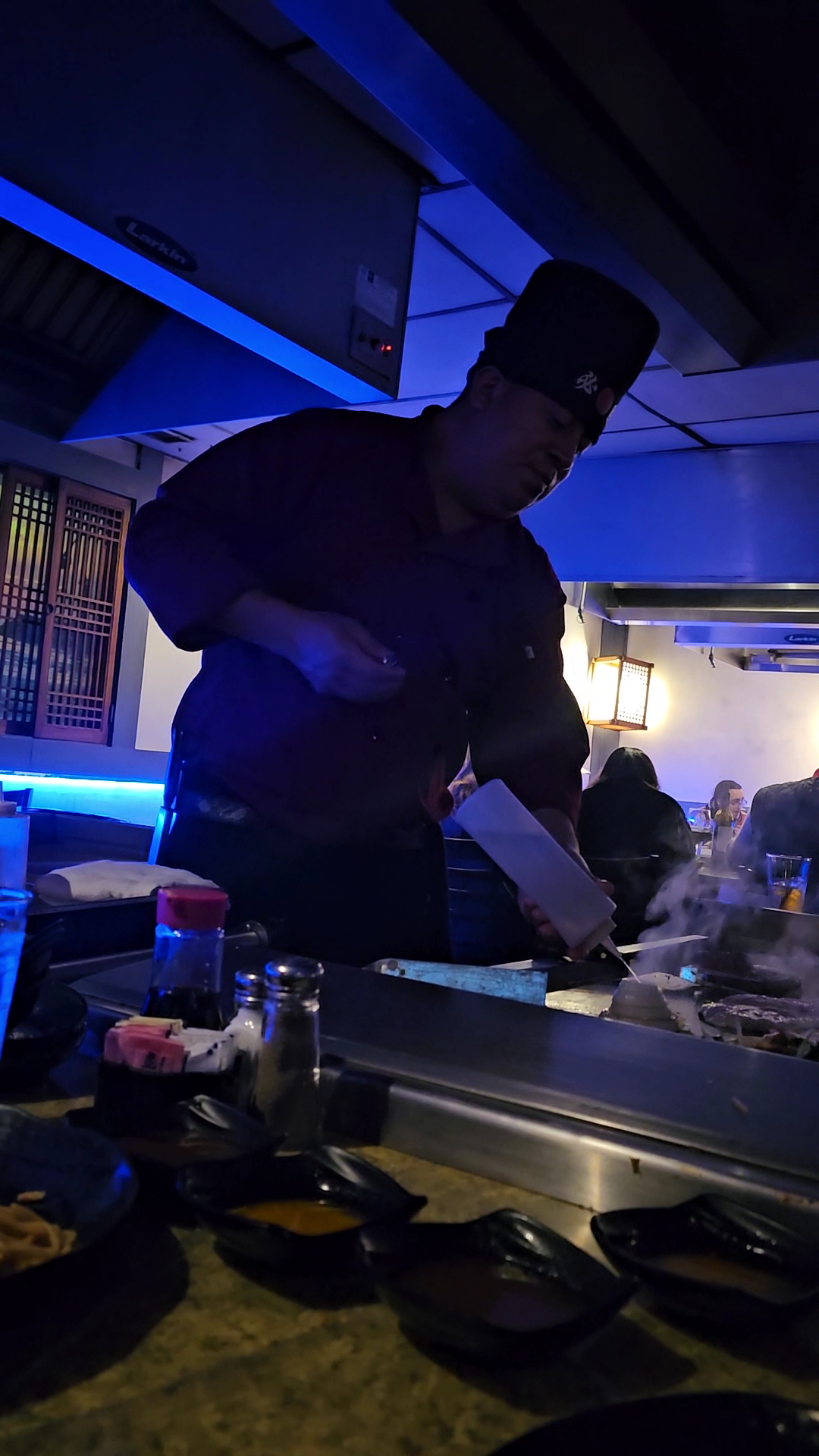 This was my first time here and compared to hibachi places I’ve been to in the South east, I’m only giving this place one star for service and one star for the taste of the food. First let me start off with I was absolutely disappointed that they didn’t have the traditional yumyum like sauce most hibachi restaurants. Their choices weren’t much of sauces and more like dips. Oily dips. That was strike one for us, secondly was the portion sizes. Absolutely a ridiculous small amount of rice, noodles and veggies with a meal that I’m spending nearly $30 a plate for. Our chef was ok on the theatrics of his performance and personality. Maybe he’s new and a little shyer than others idk. Horrible aim. No one caught their food in their mouth that made the attempt, I got food thrown on me more than once. And I didn’t even attempt to get food in my mouth! And then the final strike on them was when we got the check. There’s an EXTRA $1.75 CHARGE FOR FRIED RICE! What??? Seriously you go to a hibachi expecting fried rice on the grill it should not be an extra charge!! I expect when I go to a hibachi restaurant to take home at least some rice, NO! You won’t have that problem here. But the meat portion was decent. Rice has to be the cheapest side and they can’t raise the portions of it??? I will NOT go back to this place! Their food tasted basically like any other hibachi place I’ve been to. Just much less for your money. Attached are the photos of my meal. I decided to start taking pics of my portions only after I took 2 very small bites noodles and one small bite of rice afraid I’d have nothing left to eat with my meat, it practically got cold waiting for the meats to get done and...