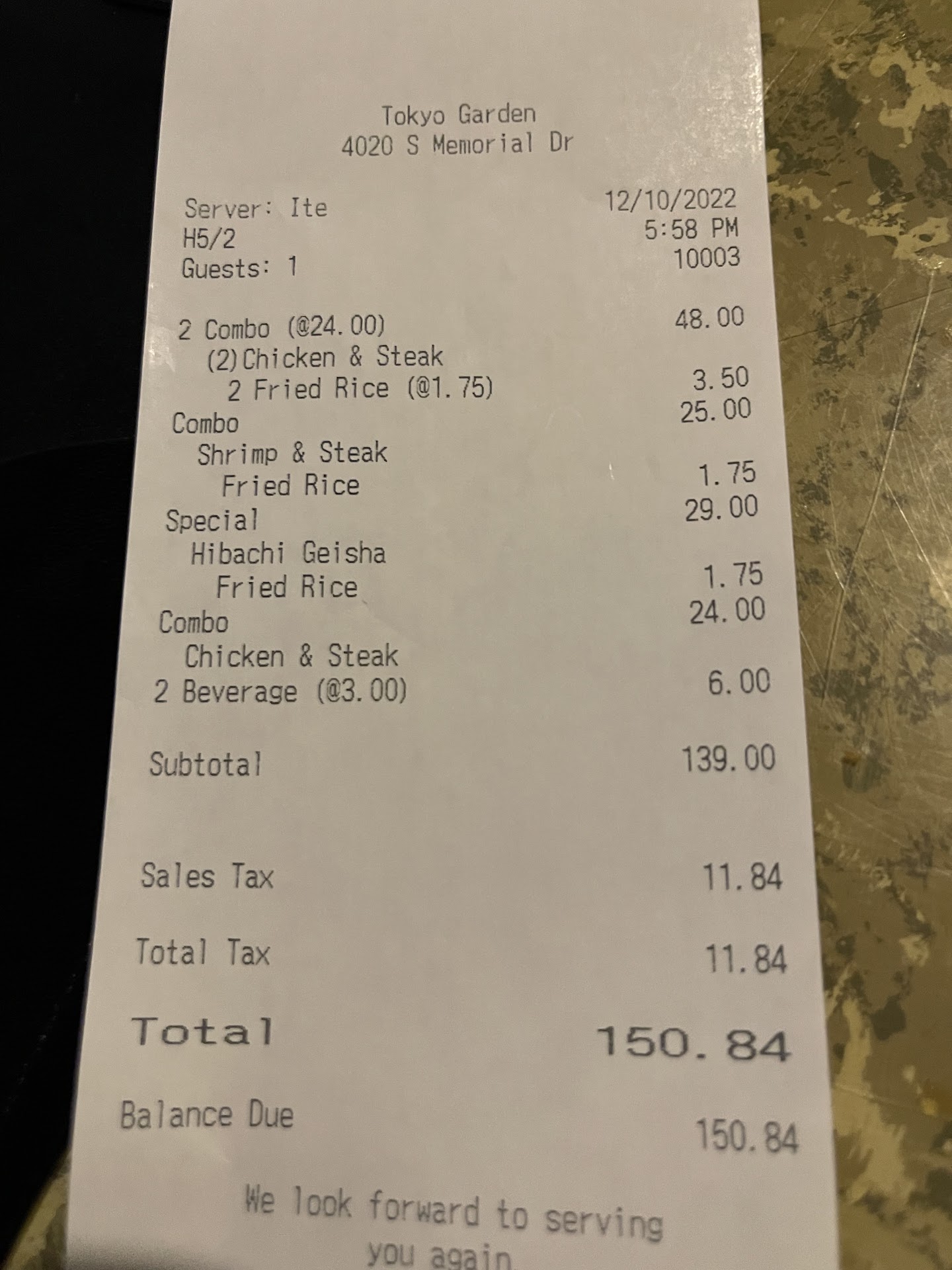 Read moreI loved it! The food was really good. Of the three hibachi Steak House's I have been to in Tulsa, I would say this is overall my favorite. I will have to try the newer one down on Memorial for comparison.