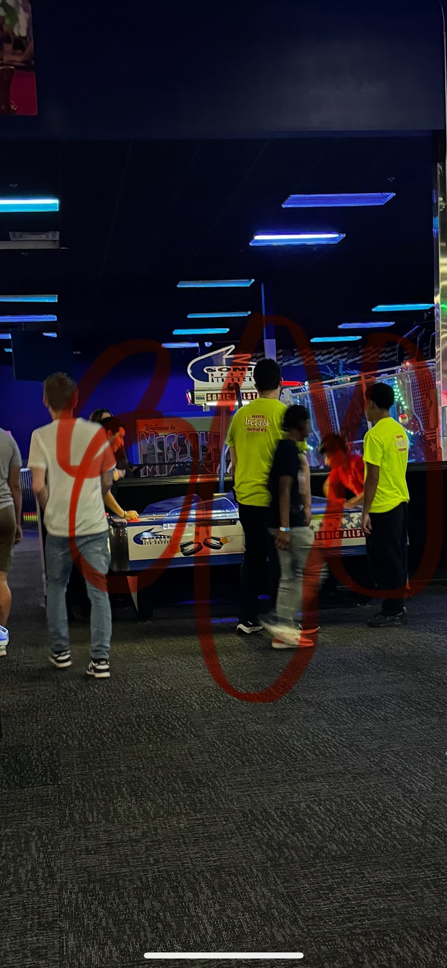 I went this last Monday night. The workers were playing air hockey or sitting around. The only attractions open was laser tag and Race Cars. Those people were working. A female employee was watching a male employee with an ear piece play air hockey. He was playing it with another worker in a neon on shirt who was carrying a broom playing air hockey. The female employee and male employee in purple told me the laser tag worker had to open up the other attractions. It would take 30 minutes before they could open them!!! Be mindful, we paid extra to get attractions for my son’s birthday. After waiting about 20 minutes We stopped a different worker, who finally opened the roller coaster one. After my nephew got off the ride They made an announcement. The attractions would be closed in 30 minutes. I wasted my money because they didn’t even have EMPLOYEES at the other attractions. I never complain on these reviews and I’ve never complained about this place, but I went and spent my money and my family couldn’t get on all the rides. Maybe it was a Monday thing? I wouldn’t go again unless it’s a Friday. The girl is finally walking away from air hockey table, the picture with the employee playing with a kid in red, then the employees watching, the girl is their she is covered by the employee in purple, the shorter neon shirt employee played as well, but the employee in purple couldn’t get away from that table. He would leave for two minutes and come back. I don’t mind employees playing, except when all rides are working and we aren’t sitting around waiting for workers to open the attractions. Incredible pizza needs to do better having a manager there in the attraction side that’s a 30 years old. The front desk service was great, the food was great, the people taking our plates was great, the games were great, it wasn’t until the attractions we were highly disappointed. Below are pictures everyone circled and Red are employees. The tall one in the neon shirt circled in red finally opened one ride for us.