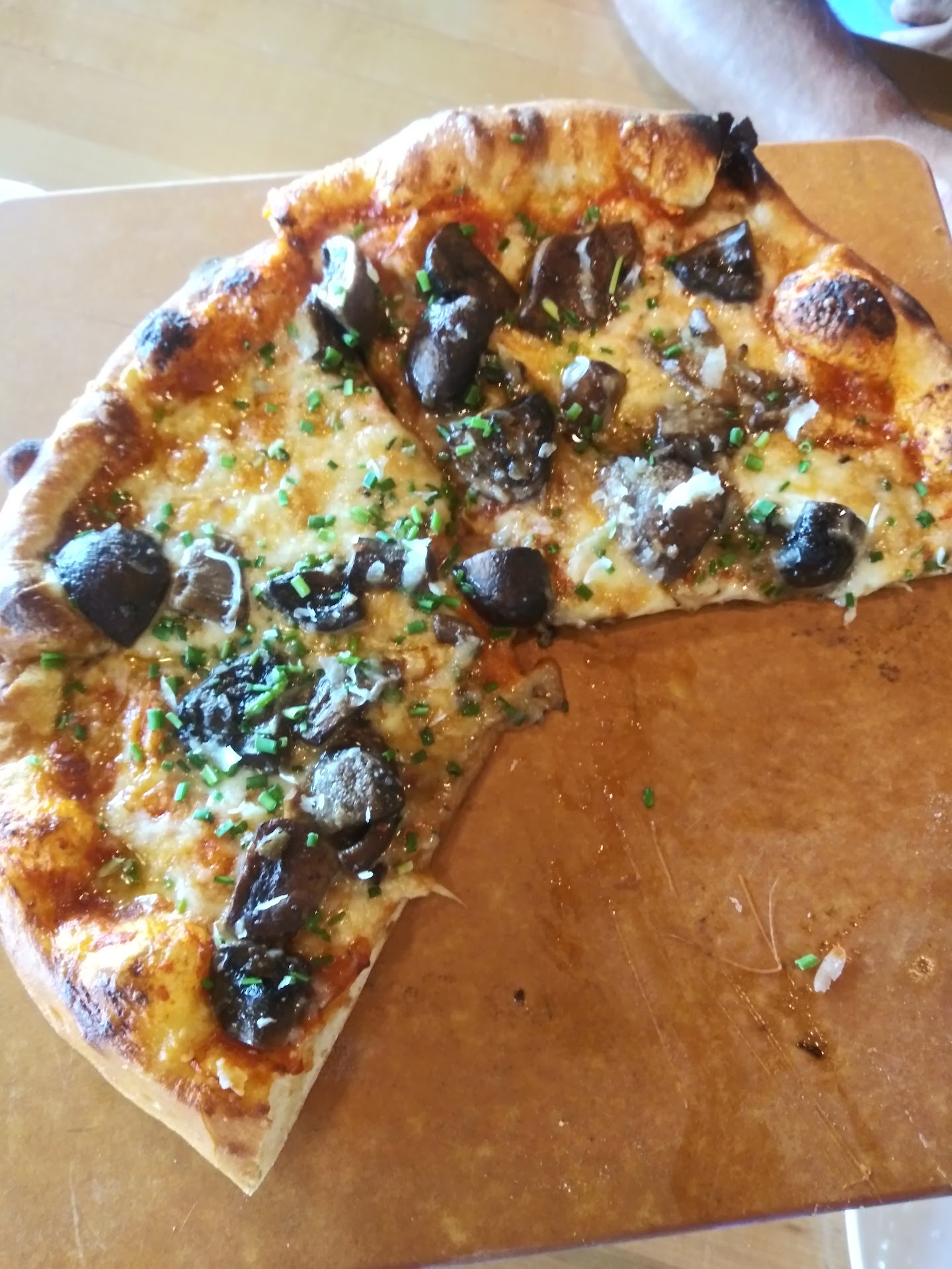 Food: Tea limeade mix was refreshing and delicious, only a sprig of mint could have elevated it. I give it 4 stars Calamari was delightful, the marinara sauce was a great pairing an additional white peppercorn sauce would have been nice but I give it 4 stars Pizza: I had the 7" w/garlic sauce, goat cheese,basil and pepperoni. My husband has the tony pizza which he did not like. Our food arrived via runner and the basil was missing from mine, the runner offered to take it back, and I suggested that it would be easier to just bring me some basil. My pizza was good, I give it 3.5 stars, my husband was not a garlic sauce fan and gave his 1 star. The waitress checked on us when he was finished eating, and I was about 90% through my food. No time for her to fix anything that could have come up, thankfully the runner took care of things.