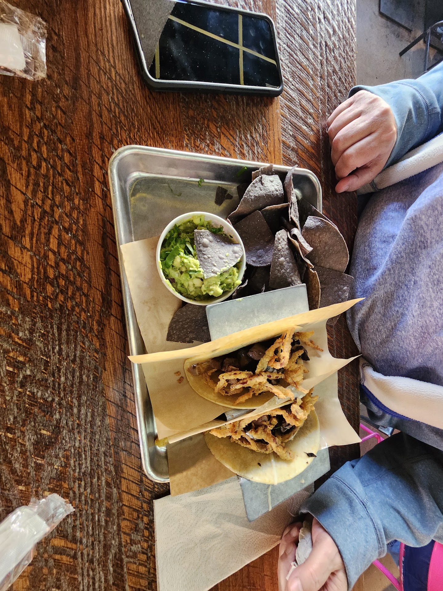 My lunch partner had the grilled steak tacos with deep fried onion strings on top. Looked & lunch partner confirmed they were delicious.