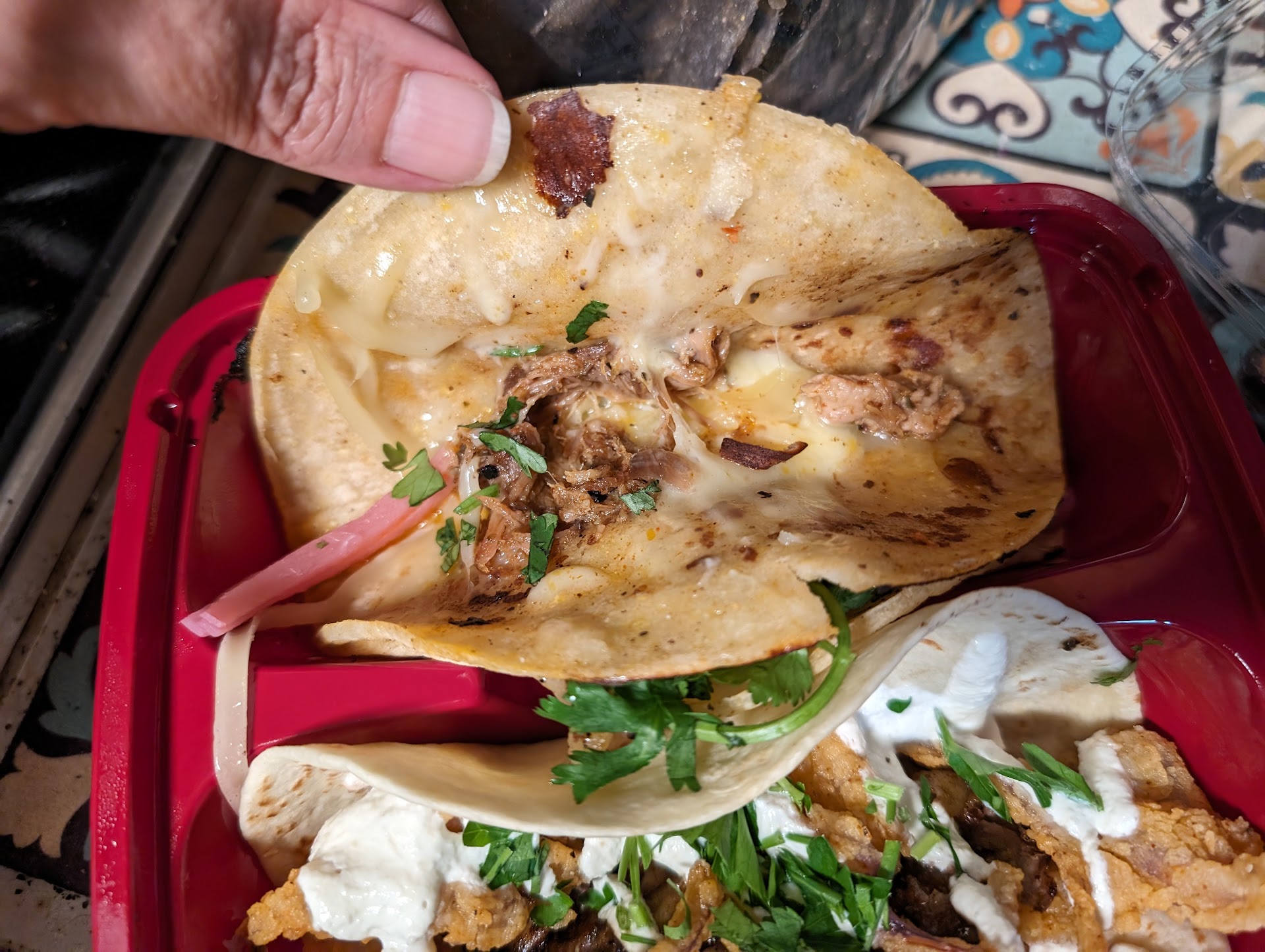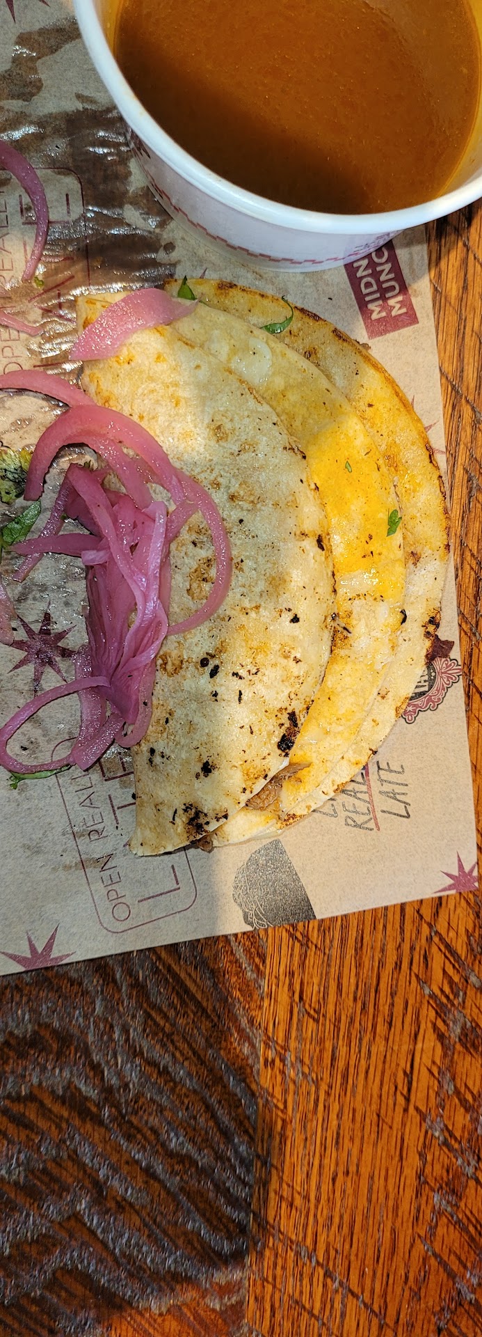Read moreSo I've been to velvet taco a hundred times. I absolutely love this place but today.... today I was totally disappointed. Never have I ever had a bad thing to say about this place. I was soooo excited to try the barria taco! I went today for lunch...I was so sad. Never have I seen a worse put together taco by them. I got an email earlier this week about this taco added to the menu and this is my most favorite taco ever! I'm like I gotta see if it's comparison to don justo... well it wasn't. My one taco came in two separate tacos and didn't look like the picture in the email I got AT ALL! The onions were piled on the OUTSIDE of the TACOS. CUZ THERE WERE 2. It didn't come with but a couple pieces of cilantro and 2tsps of consume that was cold. The only thing on the taco was a few pieces of meat and queso. None of the other cheese. The onions were on the OUTSIDE of the tacos. Barely any meat and flimsy tortilla shells. I was SO DISAPPOINTED. FIRST TIME I'VE EVER BEEN DISAPPOINTED When I ate here. It tasted good but there was floppy tortilla with minimal meat and cheese to do in the consume I had to tip the bowl to the side to even get any cuz they was so little of it. This is now on the menu so I really hope yall do better with this item because I'll never order this again. I'll keep coming because I'll order other things I love so much but I won't order that again. Ps I just got a response saying they are glad they took care of me .... YALL DID NOT TAKE CARE OF ME. WORSE TACO I HAVE HAD AND DO NOT RECOMMEND AND PISSED I PAID 6 BUCKS...