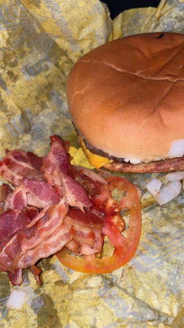 I was excited to indulge in a tasty meal. Little did I know that my anticipation would quickly turn into disappointment and frustration. As soon as I opened the burger, there was bacon mashed all inside of it.. I never mentioned anything about Filthy Bacon. It was as if they blindly grabbed whatever they could find and threw it onto the burger without a care in the world.