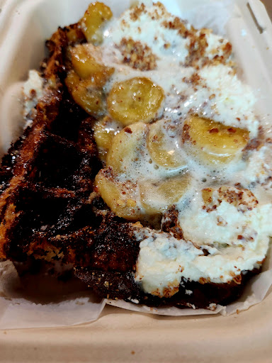 (12/21) Wanted to love it, thoroughly enjoy any/all breakfast foods and supporting local businesses, but my first time here may be my only. I arrived around 1:30pm and was not greeted or prompted to order by the gentleman working the truck, it's near closing, it's cold, I 100% get it. I ordered their new seasonal sweet waffle, the noisette, delish in theory, subpar in reality. I asked (and paid) for nutella to be added (in addition to the light caramel in the description), and recieved a waffle with neither. The eggnogg whipped cream was very tasty, the candied hazelnuts amazing, but the waffle, while fluffy and full of potential, tasted overwhelmingly like bacon and sausage grease, and not in any sort of redeeming way. So without any sauce to assist, all other flavors were replaced with simply burnt grease. It may have been because it was near closing and I declined to add a tip to my card payment (adding cash to the jar instead, not that it should matter), but after looking forward to it for days from phenom online photos and rave reviews, was underwhelmed by the actual product. Maybe you'll have better luck than I did, everyone else seems to have had a...