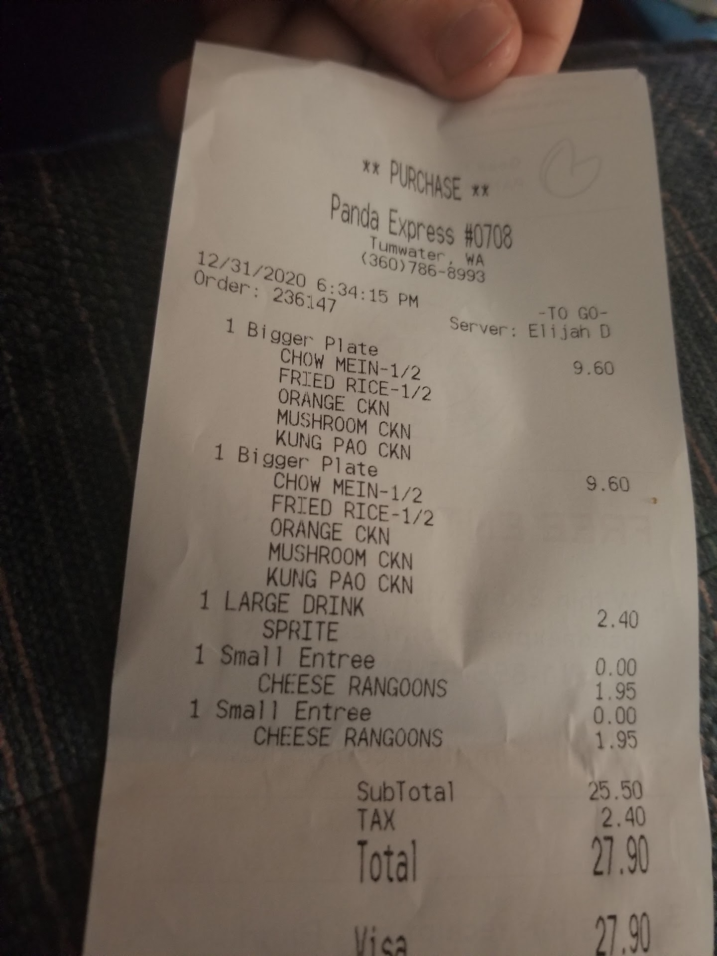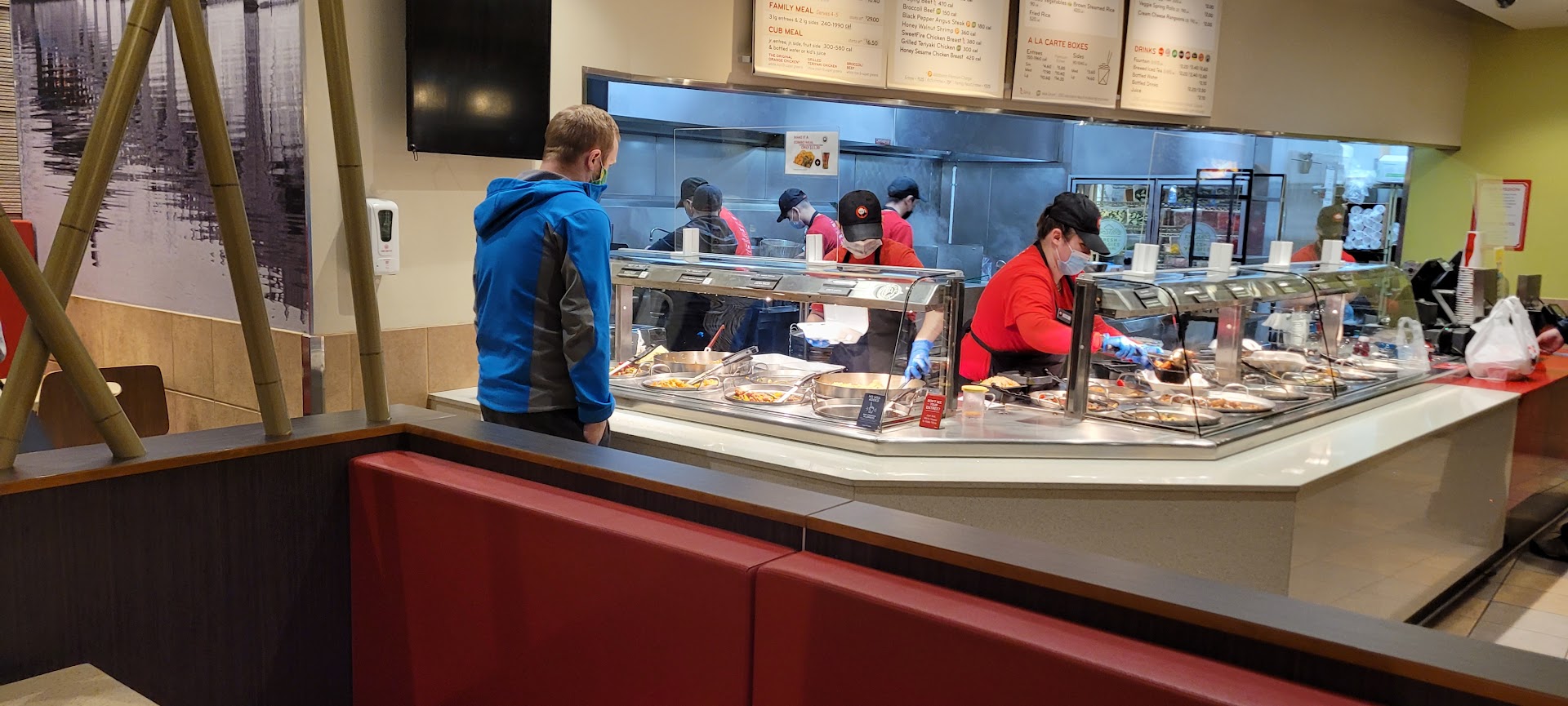 Due to all these issues, I won't be coming here anymore. I usually eat here once a week because the food WAS so good. But due to these issues, the quality has dwindled: the portions are smaller when busy and not the same amount as other locations. The quality is not as good---our chow mein had noodles not even covered in sauce and stuck together --which is from a rushed cooking. You add in a 60 minute wait? Forget it. I'll drive all the way to Lacey and get home with Panda Express in 40 minutes. And it will taste better and I'll have more food for my money. Please improve...