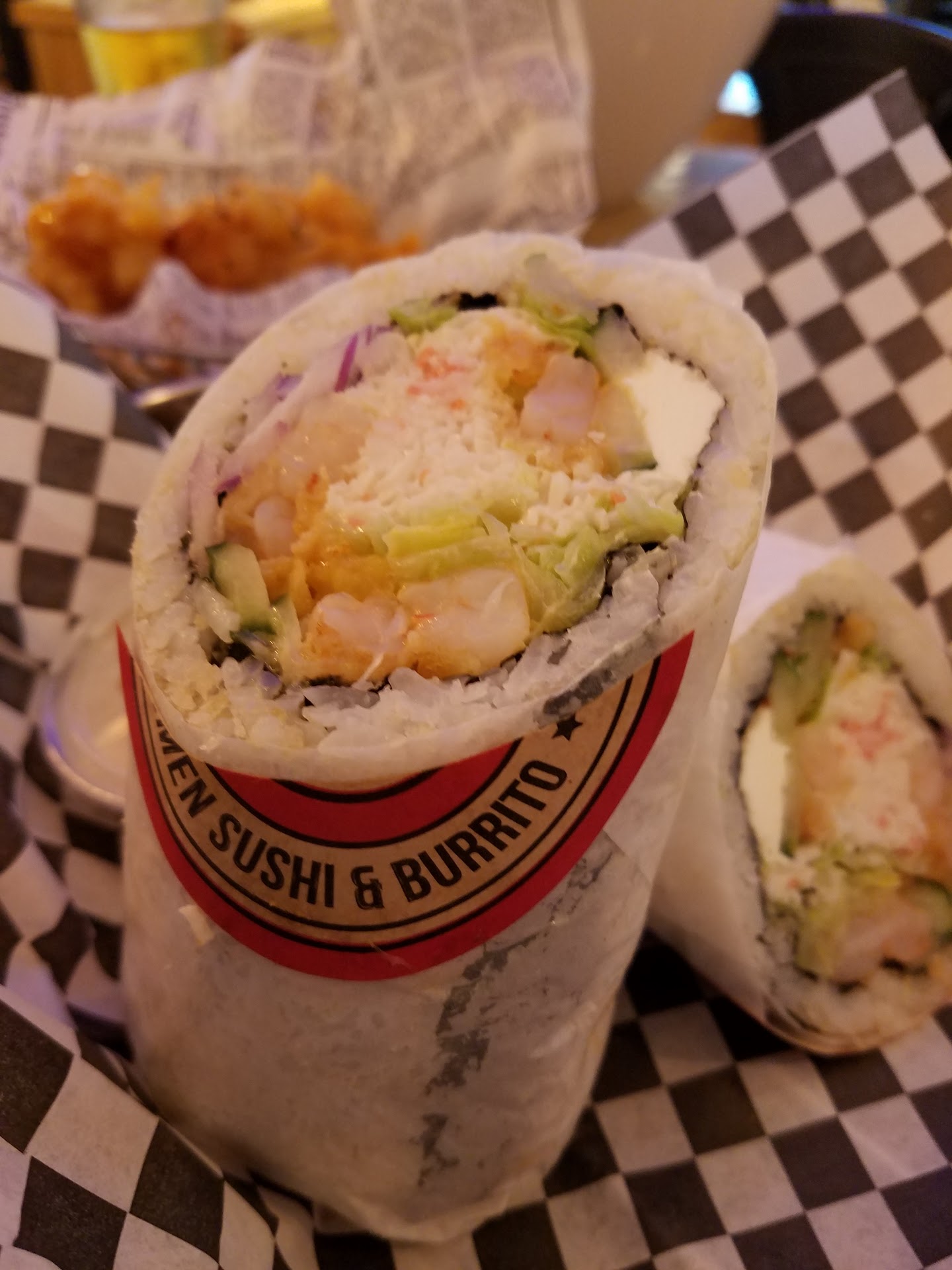 The food: 10/10 I've had most of their sushi burritos and they're all excellent! They usually come with two sauces, one that's on the sweeter side and one that's on the spicier side, both are excellent! It depends on what kind of sushi you like, but I would definitely get one that has a little bit of crunch in it. I've only had the ramen once but it was very good also. For me personally the only draw back on the ramen was that it was overly salty for my taste, but it didn't bother others that got it.