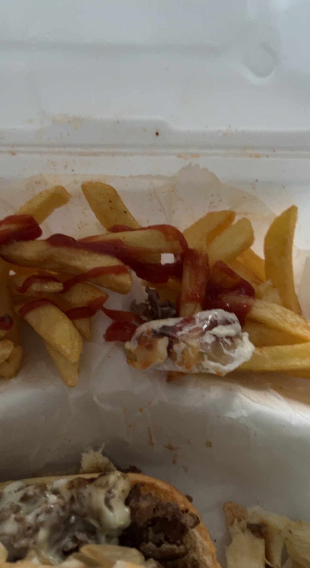 Read moreI just left not to long ago and plastic was in my philly steak and i am sure people hands and germ was on it lucky i notice my philly steak had lettuce and i ask for onions not lettuce and when i open it up discovered the plastic look like it came from a mayo covering or a covering...