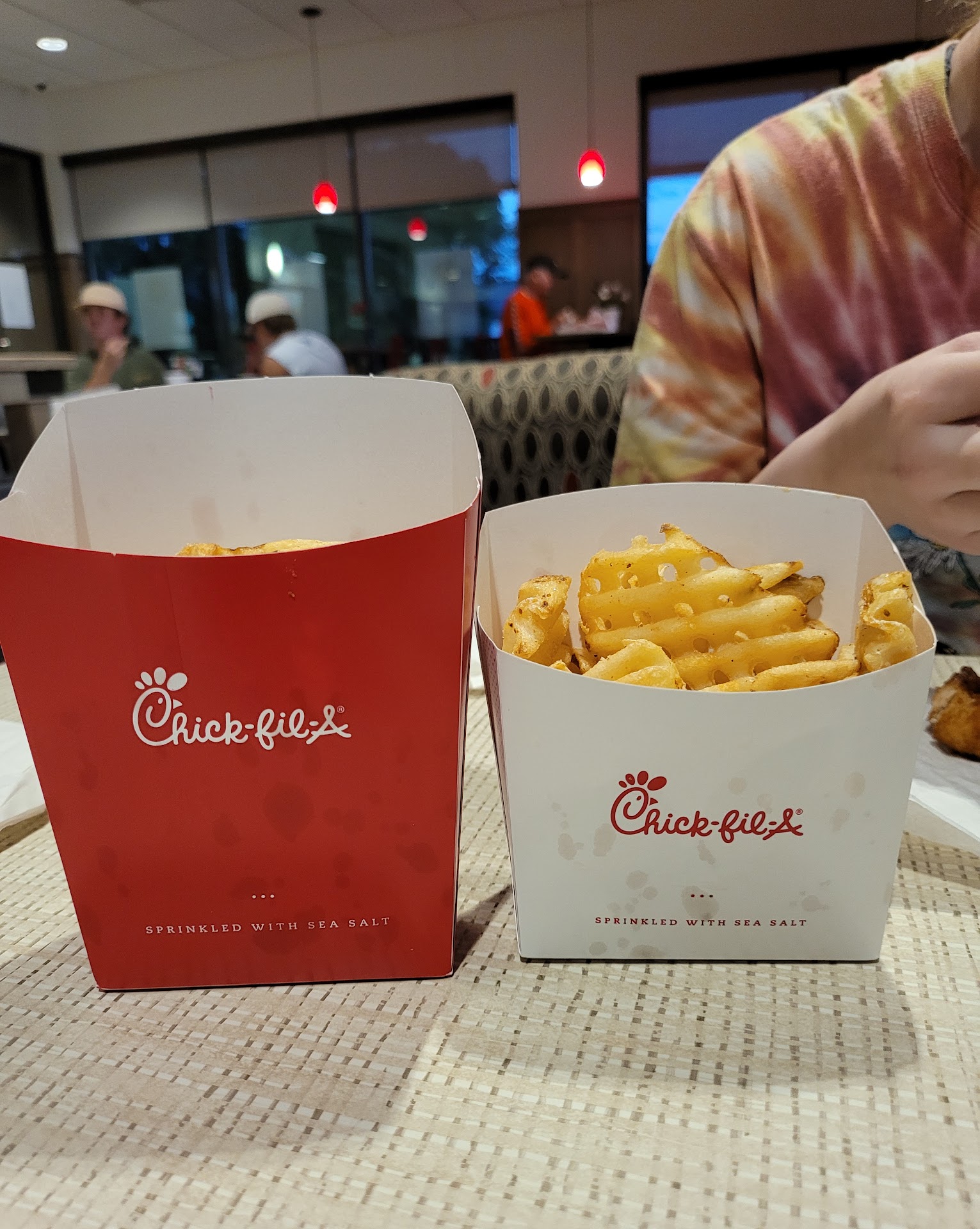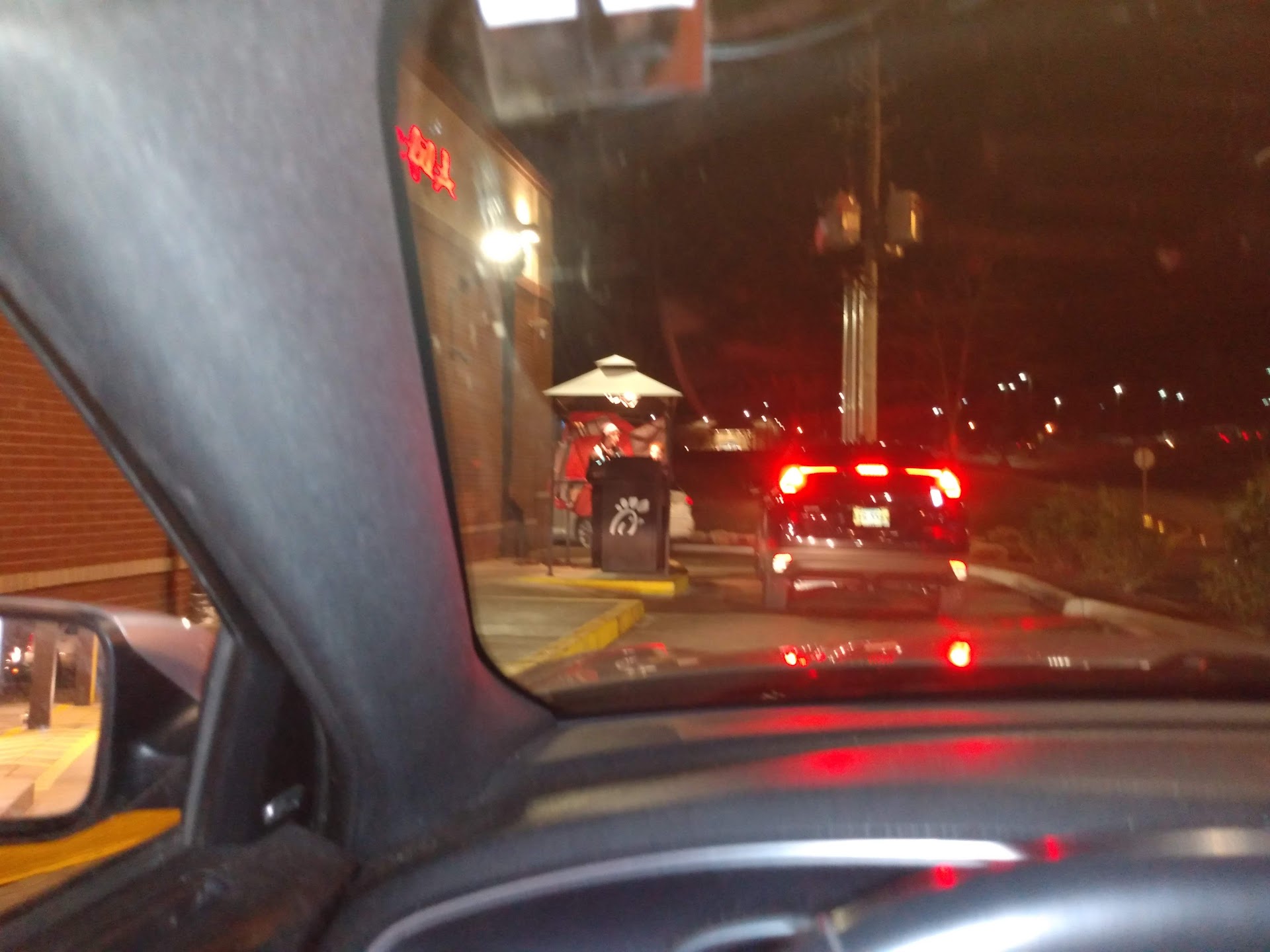 Read moreWe were coming home from a trip to Florida, and stopped in around 7 hours into our 18 hour trip home. I ordered ahead on the app and picked up curbside, but just as we were finishing up running to the restroom, a gentleman came out with our food. I did not get his name, and I wish I would’ve. (I think he may have been a manager with how he was dressed) He stayed and visited for a few minutes, talking and joking with my kids, and I told him we still had about 10 hours left on our trip. He told us to have a safe trip and headed back in. A few seconds later he appeared again, and said he felt led to pray over us, if we were okay with that. We definitely were, and he prayed a beautiful prayer over the rest of our trip. It’s always a beautiful thing to witness someone being obedient to the call of the Holy Spirit. That extra step meant so much to us, and definitely gave us a more than pleasant experience at this Chick-Fil-A location. The food was great as well! Hot, fresh, plenty of napkins and sauces, and silverware included! We’re all full and refreshed for the second half...