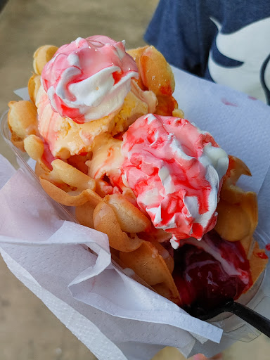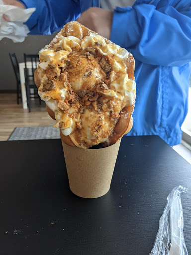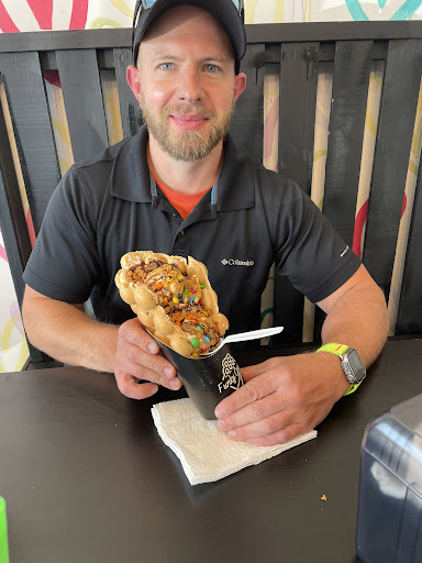 Read moreWe visited Funky Cones for the first time with no idea what to expect. My wife and I both ordered a waffle cone unsure of what exactly we were getting. We were surprised when it arrived was given to us in an actual waffle stuffed with ice cream and toppings and inside of a small cup. It was huge, but it looked awesome! We began eating and quickly realized that the cup wasn't the best option to put these in. It quickly started melting and became somewhat of a mess. Overall, we loved the product and will probably return. We look forward to trying something different on our next visit. I may suggest finding something better than the cup to put the cones in. I understand it's ice cream and does get sticky but if you don't eat it extremely quickly it is a mess. I believe a bowl, plate or anything larger would be better...