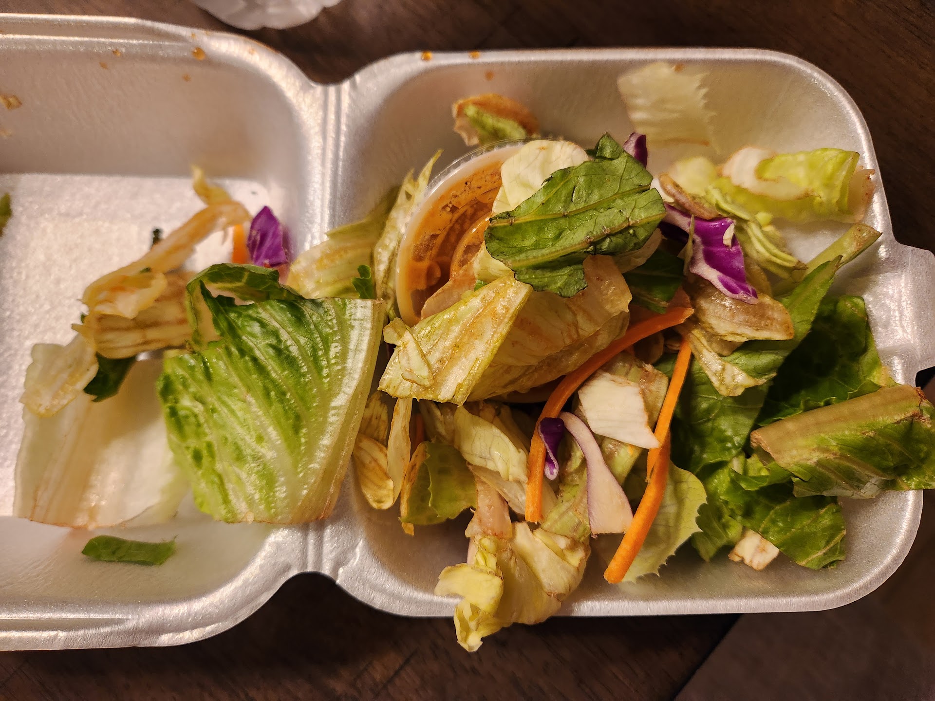 Unfortunately, this experience wasn't nearly as pleasant. The food I could eat, tasted good (cold, a bit too saucy, but good enough). The soup had mushrooms in it, so I couldn't eat it. And I love soup, so I was very disappointed. We could only eat part of one salad as jald of one and all of the other had old wilted leaves in it.